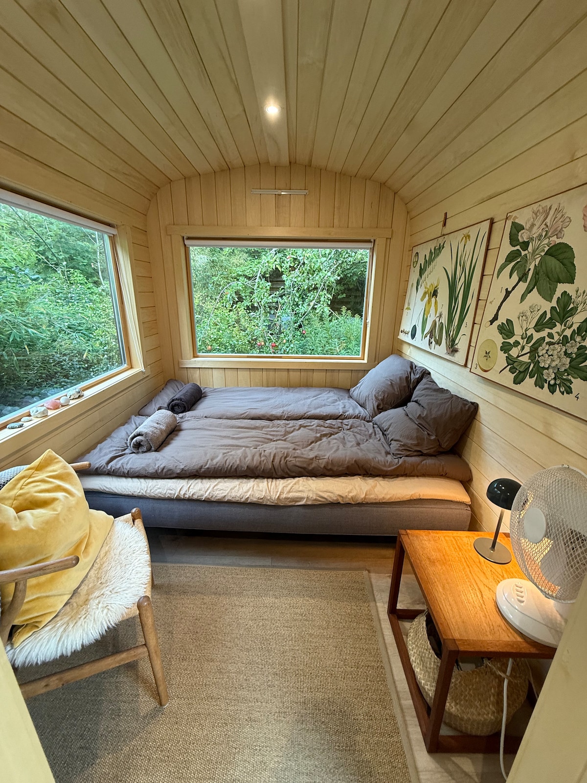 Restez tranquille au milieu d'un environnement verdoyant avec la forêt de Hans Broges comme voisin le plus proche, à quelques minutes à pied du magnifique lac Brabrand, de sentiers confortables et de courts de tennis locaux. En même temps, vous n'êtes qu'à 5-10 minutes à pied des transports en commun et à 14 minutes en bus du cœur d'Aarhus. Ce que nous offrons : * Hébergement privé et calme avec de la place pour 2 personnes (lit double 140 x 200) * Kitchenette avec cuisinière, réfrigérateur, évier et table pliante * Toilettes et douche privées * Accès au terrain de pétanque, au foyer, aux sièges extérieurs