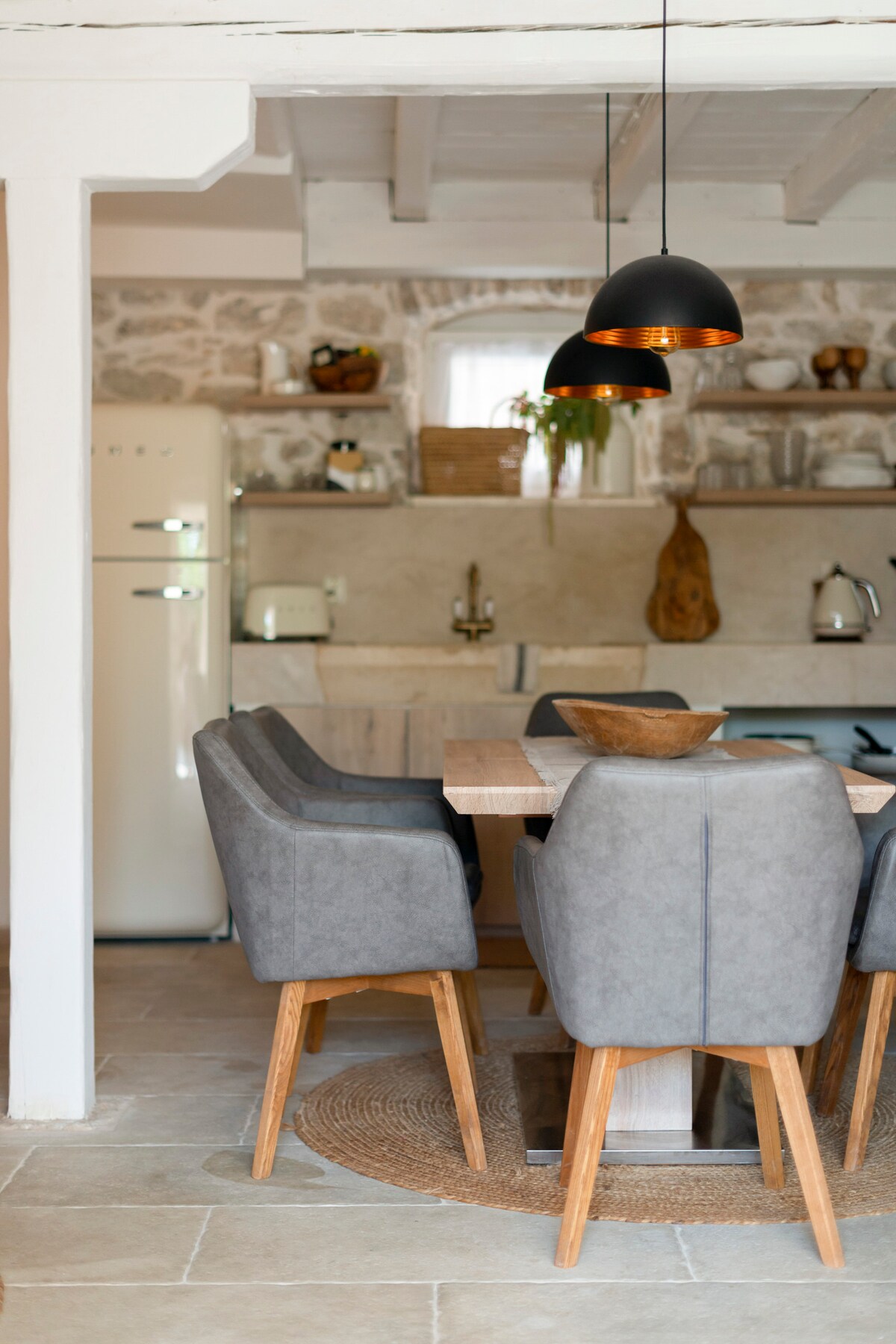 La villa en pierre Lemon est décorée avec goût dans un style romantique mais contemporain et est meublée de lits king size, de draps de haute qualité, d'une télévision à écran plat et de salles de bains modernes. L'un des points forts de la villa est sa généreuse chambre principale avec salle de bain attenante au deuxième étage. Trois chambres se situent au premier étage et une autre au rez-de-chaussée. Le barbecue traditionnel en plein air est pratique pour préparer de délicieux repas ainsi que pour l'atmosphère. La cuisine est entièrement équipée.