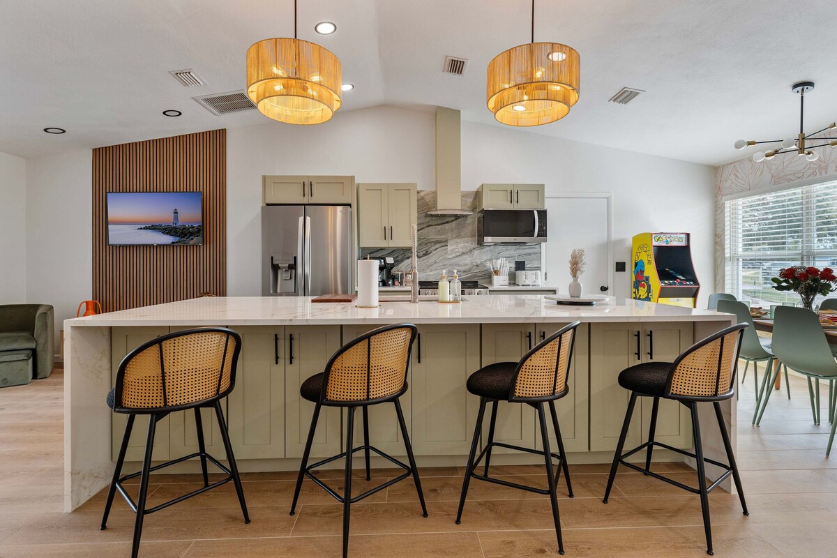 Bienvenue dans votre escapade de vacances parfaite à West Bradenton, en Floride ! Cette maison magnifiquement rénovée de 2 chambres et 2 salles de bain est conçue pour la détente et le divertissement. Profitez de jeux d'arcade classiques, détendez-vous au coin du feu ou rassemblez-vous pour un barbecue dans la salle à manger extérieure. La maison est entièrement équipée de produits de base pour la plage, de jeux de société, d'une chaise haute et d'un pack n'Play, ce qui la rend idéale pour les familles. Restez connecté avec une connexion Wi-Fi gratuite et profitez de la laveuse et du sèche-linge pour plus de commodité.