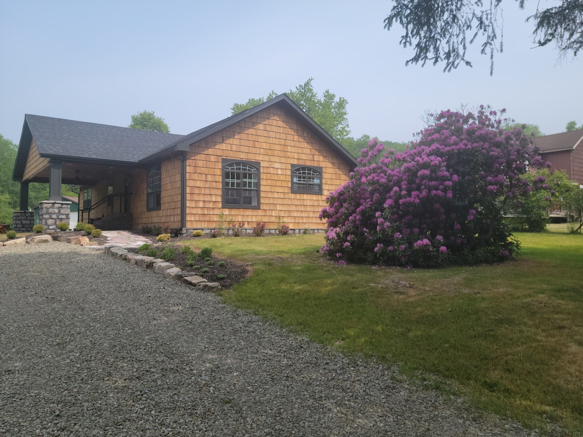 Notre retraite tranquille nichée au cœur de la forêt d'Allegheny, où chaque saison offre son propre enchantement. Une cabane confortable mais spacieuse offre un charme rustique et un confort moderne, parfait pour une escapade sereine à tout moment de l'année. Que vous soyez à la recherche d'aventure sur les sentiers de randonnée à proximité, de moments sereins au bord du ruisseau ou de nuits étoilées sous le ciel clair, notre maison offre tout cela. Avec beaucoup d'espace pour les familles ou les groupes, et à quelques minutes en voiture des attractions locales, votre expérience inoubliable vous attend.