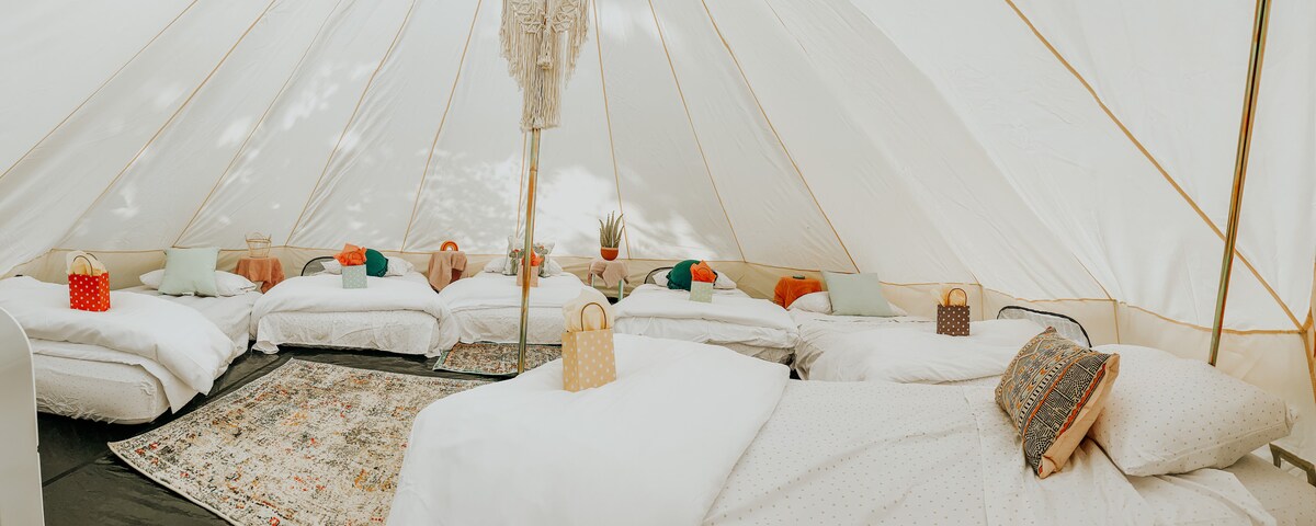 Déconnectez et entrez dans la nature en glamping dans cette belle tente/tipi éloigné, calme et relaxant sur Union Lake dans le sud-ouest du Michigan. Notre tente cloche est parfaite pour les couples, les familles, les amis et les aventuriers en solo. •5 matelas gonflables jumeaux ou 1 queen size disponibles ou apportez vos propres sacs de couchage. •Propriété privée au bord du lac ; ; ; ; ; •Foyer •Pas d'électricité/plomberie/eau courante, seulement des toilettes à remous à sec pour maximiser l'expérience débranchée et à distance •Magnifique décoration bohème pour une ambiance glamping chaleureuse