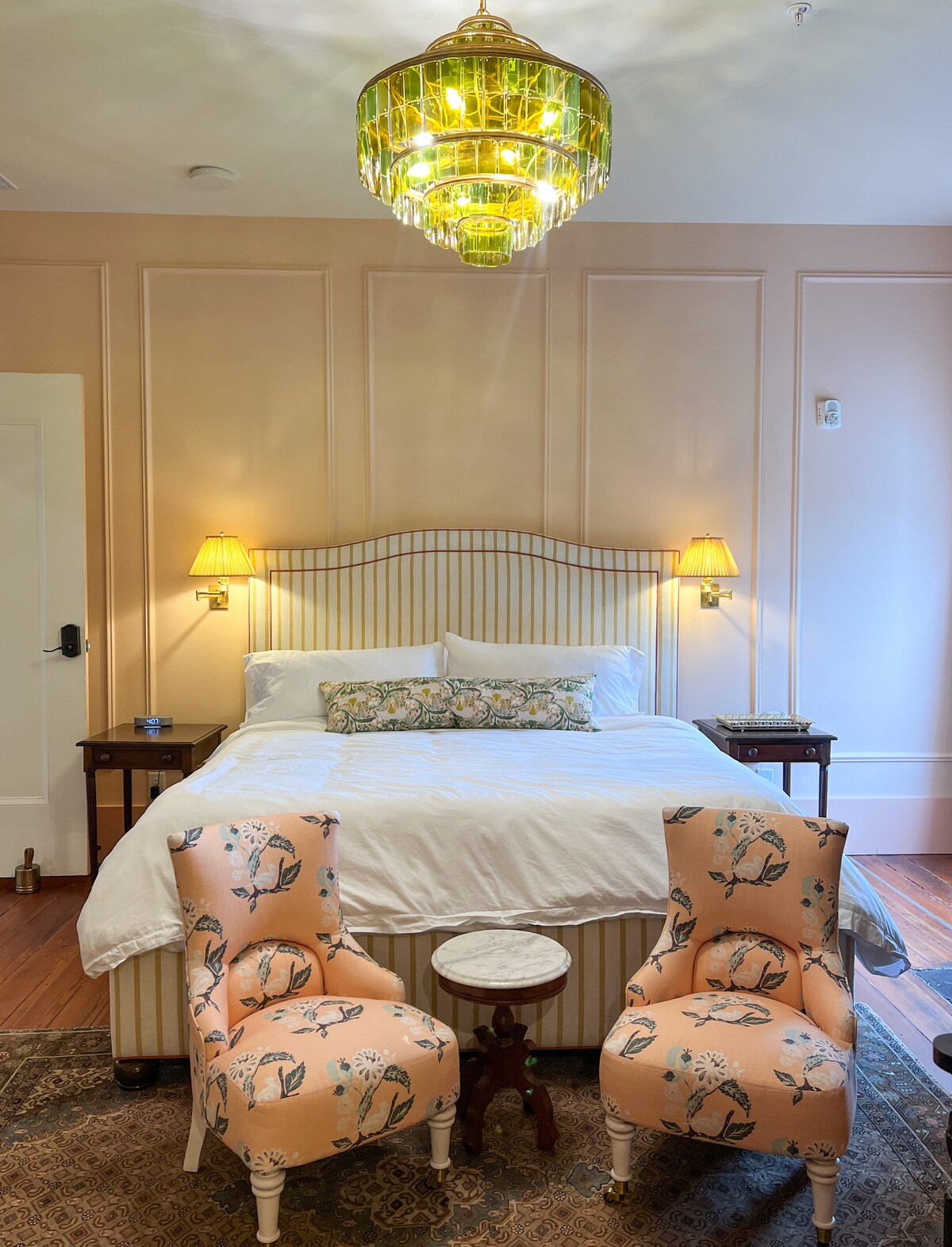 Installez-vous dans nos chambres sophistiquées, où le décor de charme et la lumière naturelle abondante créent une atmosphère accueillante. Restez productif avec le Wi-Fi et les postes de travail ergonomiques, ou détendez-vous avec les divertissements sur un téléviseur à écran plat de 55 pouces avec les dernières sorties. Savourez une cuisine fraîche livrée à votre porte avec un service en chambre pratique, et découvrez la véritable élégance du Sud dans nos suites, avec balcon privé et foyer confortable.