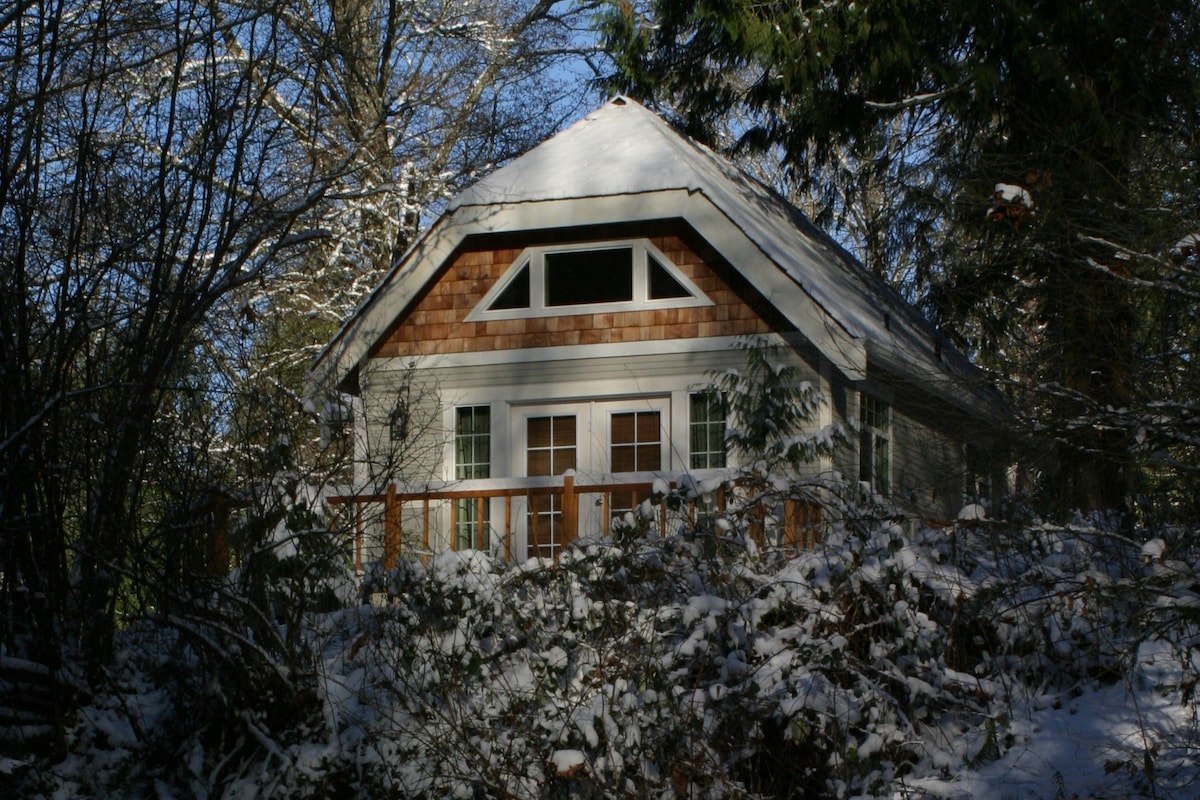 Vue complète sur le jardin, « maison d'hôtes » isolée, lumineuse et moderne, à 5 minutes de l'autoroute et à 10 minutes du ferry dans l'ouest de Bremerton. L'espace est une unité autonome détachée de notre maison principale nichée hors de la rue principale, nichée parmi les cèdres et les sapins le long de Mud Bay reliant Puget Sound. La chambre offre une vue complète à 270 degrés sur les jardins et les arbres, un lit queen size murphy, un réfrigérateur, un évier, un four à micro-ondes, un poêle à bois et une salle de bain, avec douche extérieure de 16".