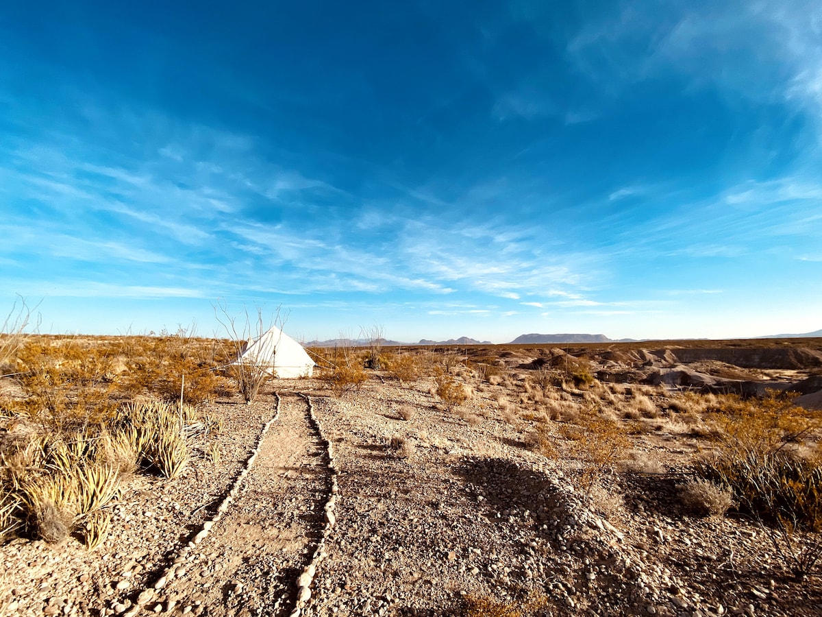 Luna’s Landing is a custom built glamping site nestled between Big Bend Ranch State Park and Big Bend National Park, roughly 15 minutes from the entrance of either. This large private site has a living/sleeping area, with its own full bathroom in a seperate dome. Luna's Landing sleeps 2 people and is perfectly situated for a sense of both privacy and convenient access to all our local region has to offer.