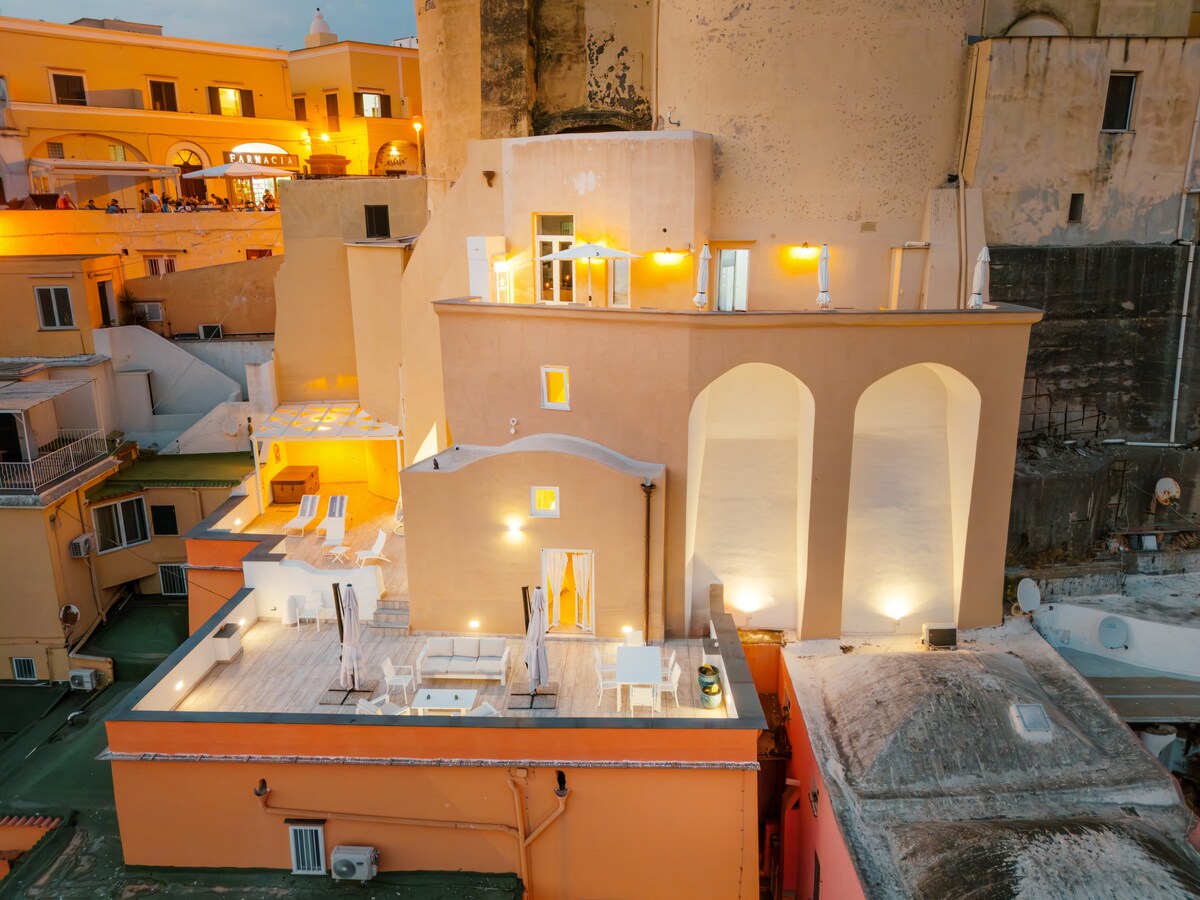 La maison de 40 mètres carrés, de construction récente, est située à Marina Corricella 64, au deuxième étage, avec un accès direct de Marina Corricella. De la petite terrasse vous pourrez profiter d'une vue magnifique et voire les bateaux de pêche avec des mouettes qui plongent à la recherche de poissons. Sur la route il y a beaucoup de restaurants, bars, magasins de crème glacée et magasins d'artisanat. La plage peut être atteinte à pied en 20 minutes ou avec un service de bateau.