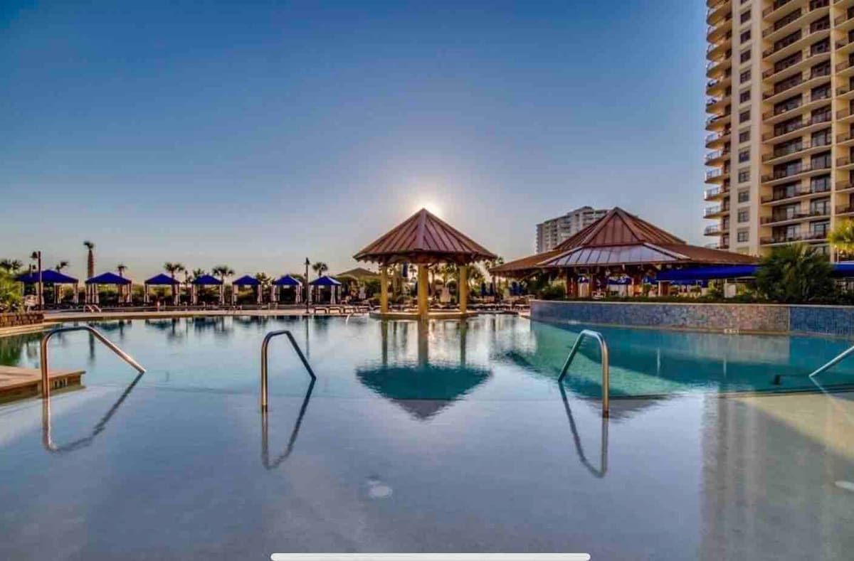 Profitez de la plus grande villa de luxe de 3 chambres des îles Caïmans à North Beach Resort & Villas, classée n° 1 des hébergements à Myrtle Beach. 2,5 acres d'équipements de piscine sur le thème des Caraïbes avec plusieurs piscines, un grand espace solarium, des cabanas personnelles avec service de majordome, des jacuzzis et le seul bar de piscine pour adultes de Grand Strand ! Nagez toute l'année avec des piscines chauffées et des jacuzzis et une rivière intérieure paresseuse. À quelques minutes de la plage. Steakhouse sur place et spa Cinzia de classe mondiale à quelques pas de notre maison.