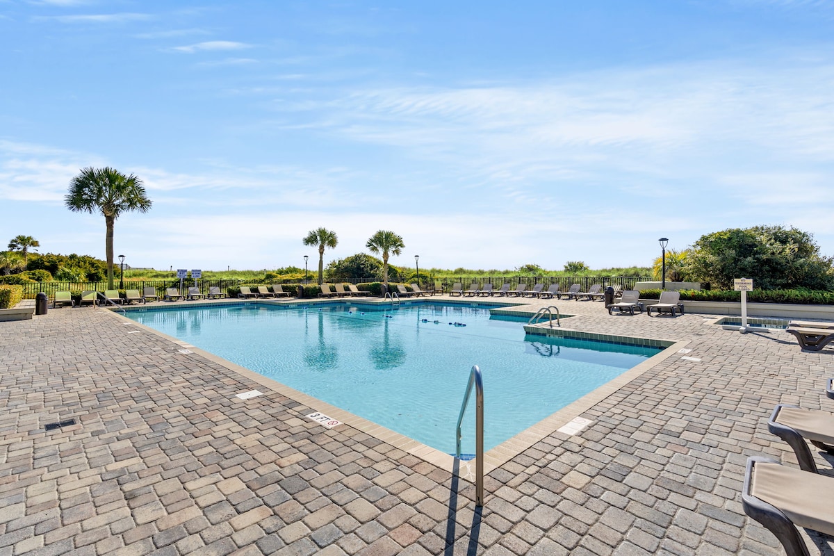 Condo rénové à quelques pas de la plage. Nouveau lit King Size, stores occultants, nouveaux meubles, téléviseurs intelligents, canapé-lit Queen Size avec matelas en mousse à mémoire de forme et plus encore. La cuisine rénovée a tout, y compris un Keurig. Lodge 1 : dernier étage, balcon privé, ascenseur et Wi-Fi haut débit. Ocean Creek dispose de piscines intérieures/extérieures et de jacuzzis, d'un bar de plage, d'un restaurant/salon, d'un court de tennis, d'un centre de conférence et d'une belle plage. En face se trouve Barefoot Landing, à proximité de toutes les principales attractions et restaurants.