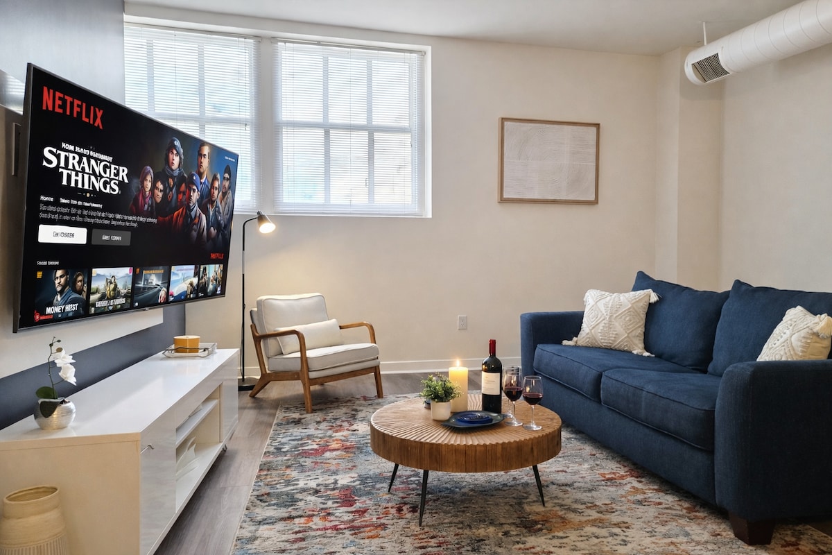 Il n'y a pas de meilleur endroit pour explorer le centre-ville d'Indy que notre élégant appartement au cœur de l'action. Nous avons un parking gratuit sur place, mais vous n'aurez pas besoin de votre voiture ! Sortez de la porte d'entrée et dirigez-vous vers les options de divertissement et de restauration animées de Mass Ave et du quartier de Bottleworks, ou flânez dans les rues pavées historiques de Lockerbie. Vignobles, brasseries, cafés, antiquaires et lieux de divertissement ne sont qu'à quelques minutes de route seulement. La nuit, vous apprécierez la vue étincelante sur la ligne d'horizon.