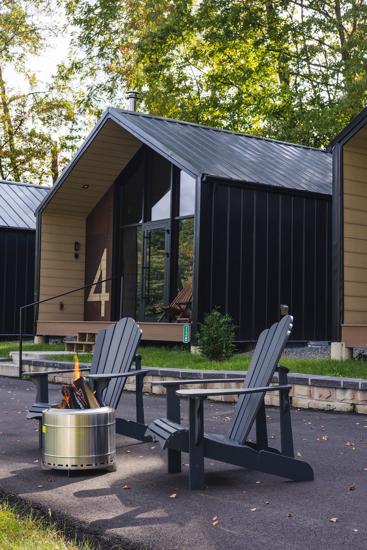 Refuge privé boisé + foyer extérieur et véranda avec moustiquaire