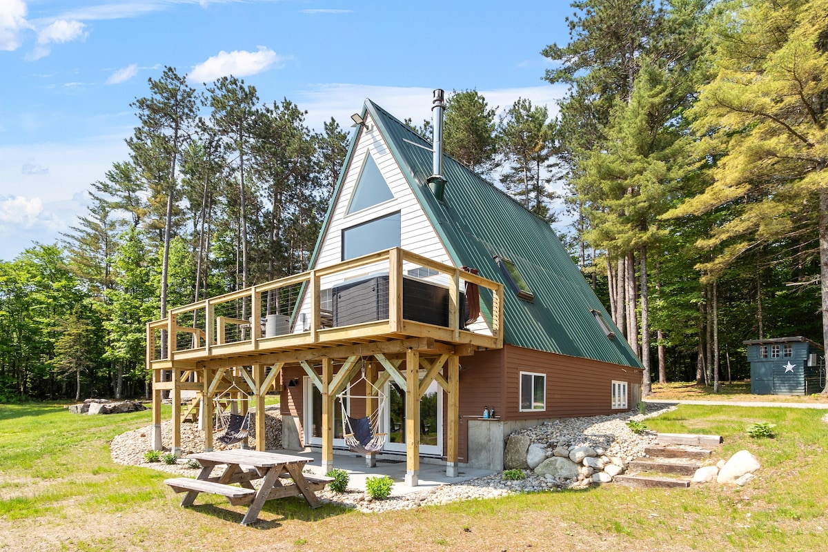 Cette maison de lac moderne est située sur Hogan Pond à Oxford Maine. Ici, vous pouvez séjourner avec tout le confort d'une belle maison au bord d'un lac construite en 2020 tout en étant à quelques pas de l'eau. C'est l'endroit idéal pour passer des vacances, que vous préfériez la plage de sable privée, la climatisation à l'intérieur avec télévision par câble intelligente et Wi-Fi, ou le jacuzzi ! Sirotez un verre au bar tout en regardant le match ou utilisez le gril sur la terrasse, mais assurez-vous d'utiliser le système de sonorisation intégré pour écouter votre musique dans toute la maison et sur la terrasse.
