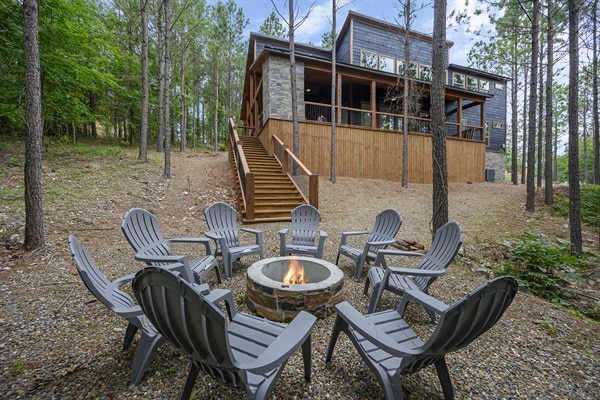 Creekside Retreat est une toute nouvelle cabane de luxe moderne de style complexe hôtelier, unique en son genre, nichée sur un ruisseau privé et située sur un peu plus de 1,3 acres près du cœur de Hochatown. Un ruisseau toute l'année coule à l'arrière de la propriété pour des vues spectaculaires et une détente paisible. Profitez du meilleur de la nature de la nature depuis la vaste terrasse de 1500 pieds carrés qui s'étend à travers les bois et sur le ruisseau. Cette cabane équilibre la vie de luxe intérieur avec le plaisir et l'aventure en plein air.
