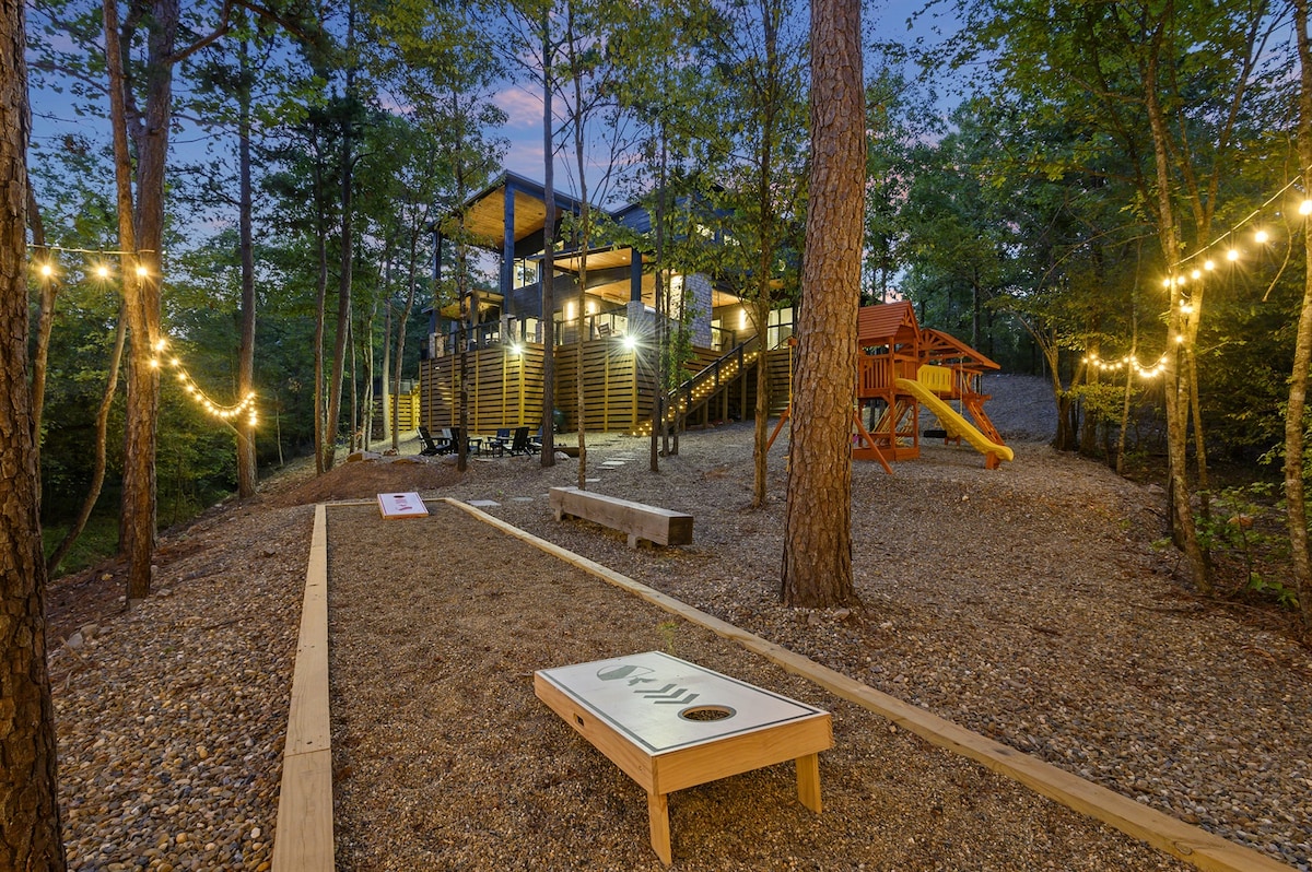 Cabane de luxe au bord du ruisseau| Ensemble de jeu |Hochatown| Chiens acceptés!