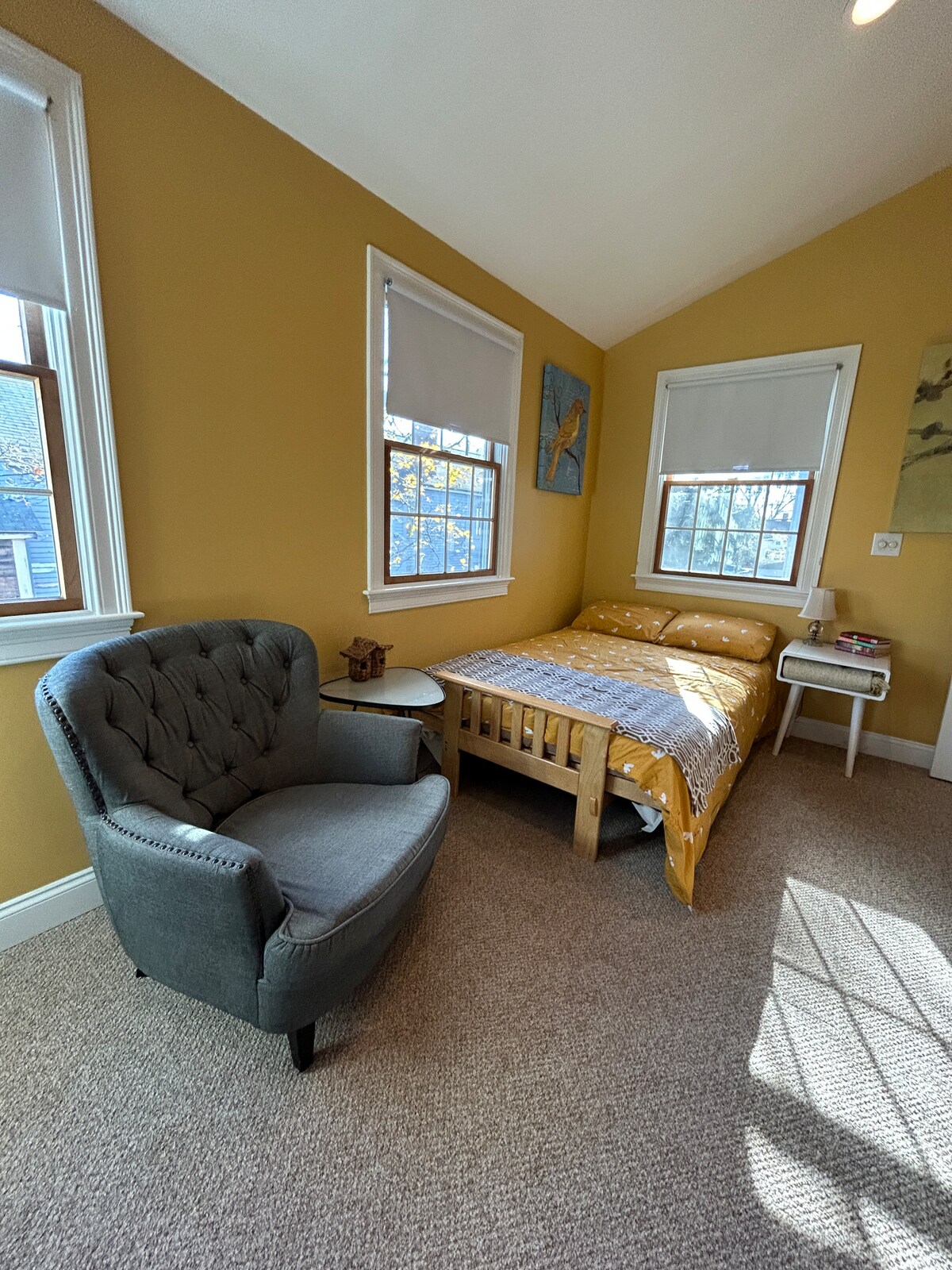 Ce minuscule appartement loft est niché dans le coin arrière de notre maison des années 1800. Avec une cuisine américaine, un salon principal/chambre à coucher, ce logement ensoleillé est surnommé le Birdhouse! Le logement dispose d'une place de stationnement, d'une connexion Wi-Fi, d'une buanderie, d'une douche à l'italienne et d'une télévision de 50 pouces, d'un espace de travail, d'une cuisinette avec micro-ondes, de plaques chauffantes et d'un four à convection ainsi que d'un réfrigérateur-congélateur. Situé juste à côté de la route 128, nous sommes dans un emplacement idéal pour voyager à Salem, Boston, Cape Ann et New Hampshire.