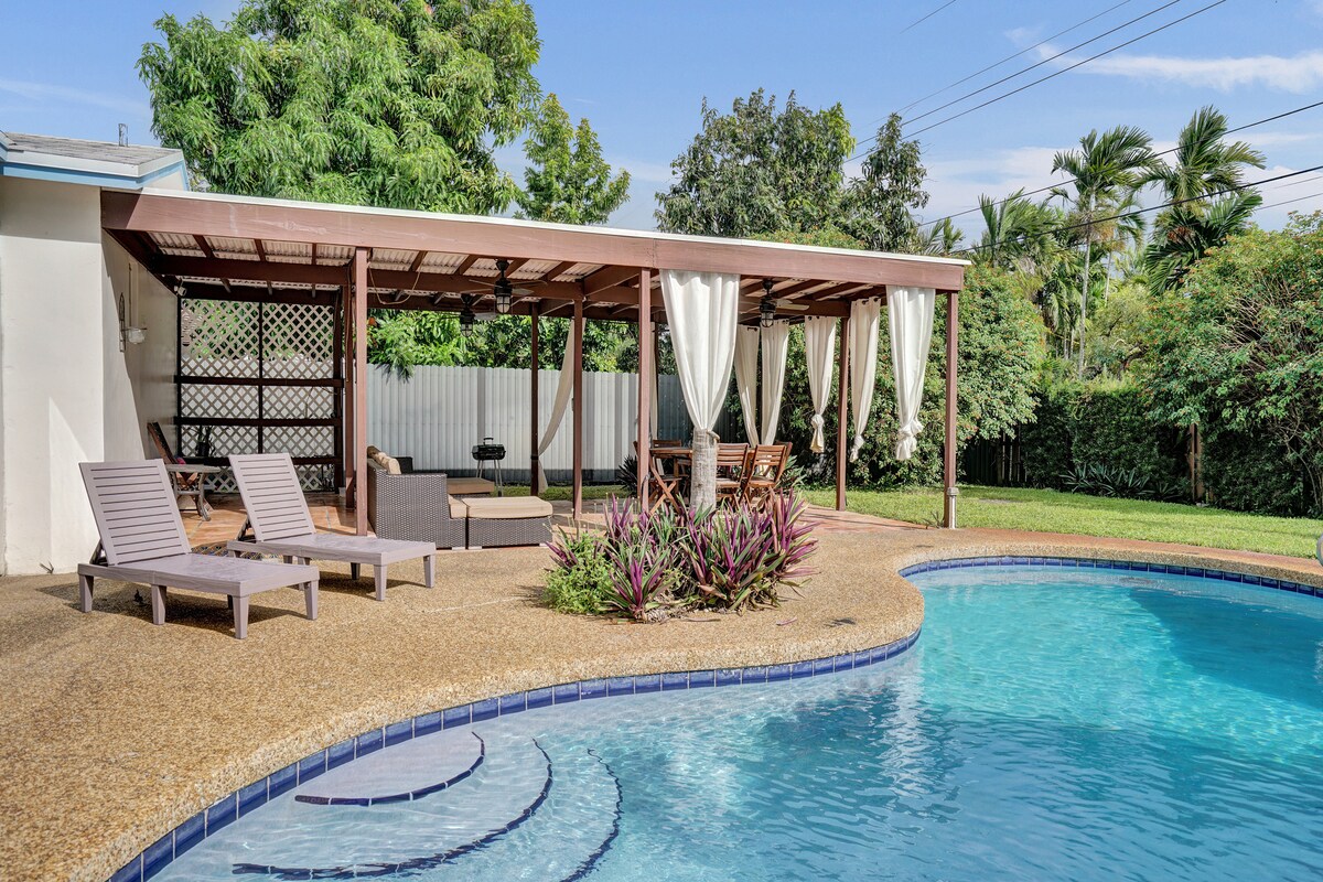 Restez dans le quartier chic de Victoria Park, à quelques minutes de la vie nocturne de Las Olas, des bons restaurants et des boutiques. Fort Lauderdale Beach est à une courte distance en voiture, vous pouvez donc facilement profiter de journées ensoleillées à la plage et de soirées amusantes en ville. Détendez-vous au bord de la piscine privée ou rendez-vous sur le patio sur le toit pour profiter d'une vue imprenable sur le centre-ville. C'est l'endroit idéal pour prendre un cocktail, regarder le coucher du soleil ou passer une soirée cinéma sous les étoiles.