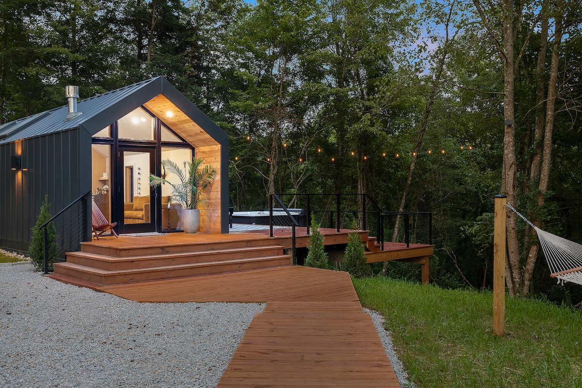 Inspiré du design moderne du milieu du siècle, The Ledge est doté de grandes fenêtres du sol au plafond et d’espaces extérieurs pour s’asseoir, conçus pour mettre en valeur la caverne environnante et les chutes d’eau saisonnières. Niché le long d'une promenade boisée isolée sur 24 acres privés, chaque détail a été soigneusement pensé pour votre confort. The Ledge offre le wifi, un spa, des foyers intérieurs et extérieurs, créant l'équilibre parfait entre luxe et nature. Isolé, mais idéalement situé pour toutes vos aventures à Hocking Hills!