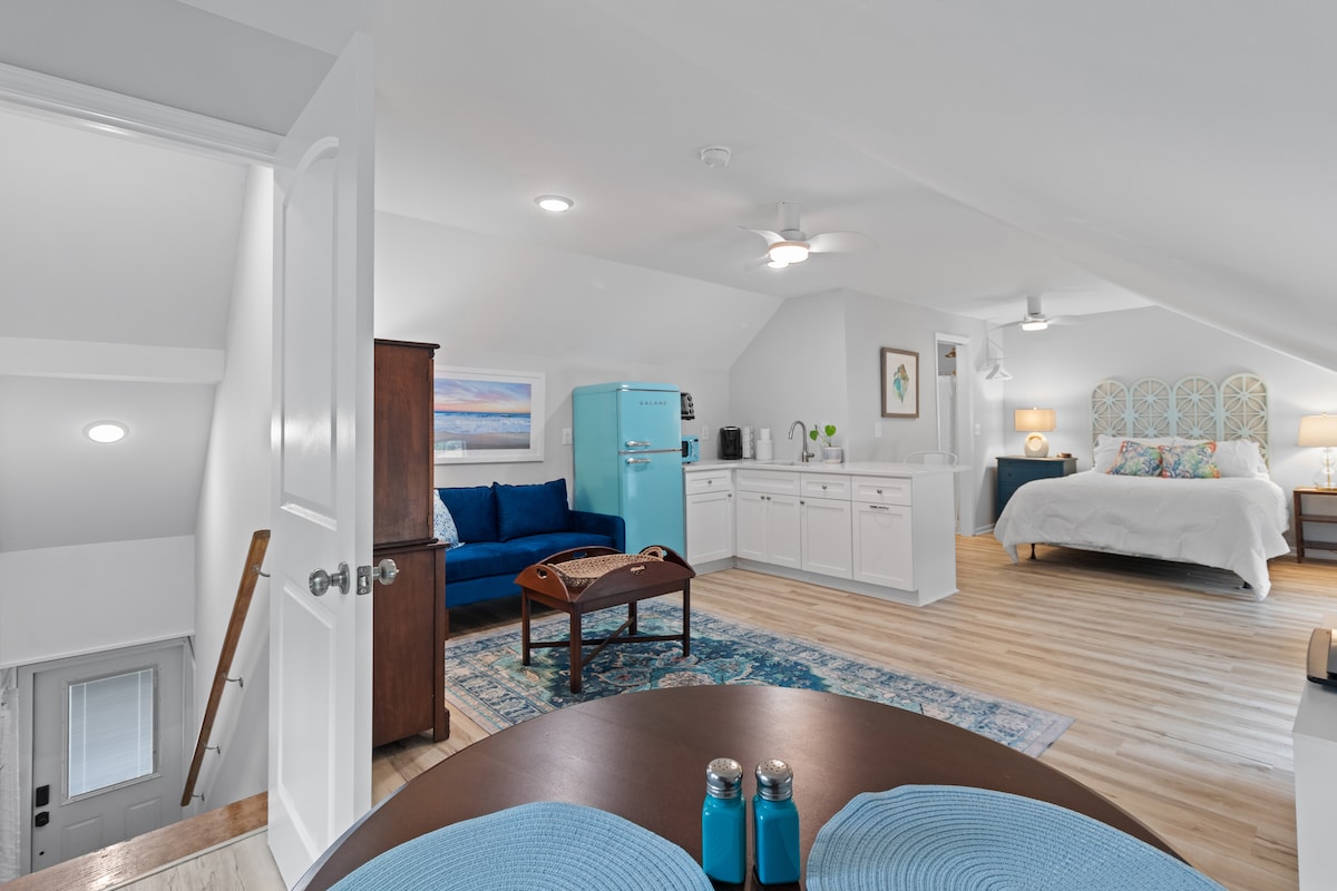 Studio entièrement privé RÉCEMMENT RÉNOVÉ donnant sur la piscine d'eau salée. Chambre confortable avec lit queen, deux chaises relaxantes, kitchenette chic et moderne, salle de bain compacte avec douche à l'italienne et plus encore ! La maison d'hôtes est idéalement située : Le centre-ville historique avec une promenade fluviale, des restaurants, des divertissements et sa riche culture se trouvent à quelques minutes. 13 minutes de Wrightsville Beach ; 20 minutes de Carolina Beach Pas de pénurie de restaurants, de musique live, de parcs, de brasseries, de magasins, d'activités de plein air et bien plus encore.