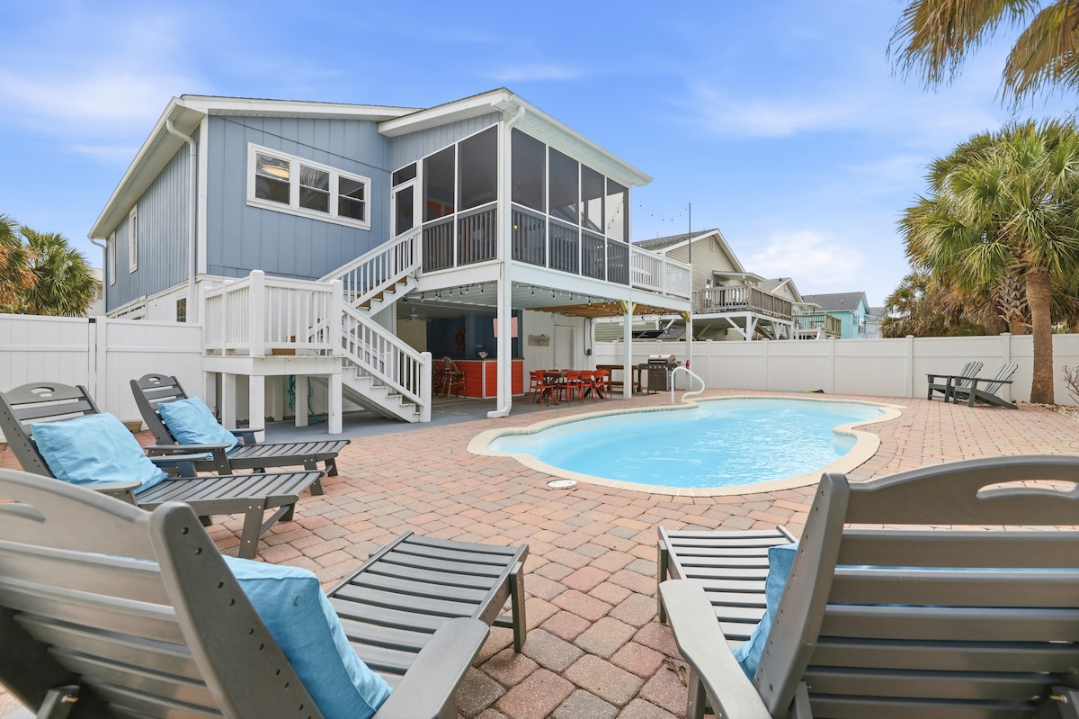 Ajoutez un peu de paix et de tranquillité à votre voyage... magnifiquement meublée à l'intérieur, maison entièrement approvisionnée, avec une oasis dans l'arrière-cour - c'est une maison que vous voudrez visiter encore et encore. Avec votre propre piscine d'eau salée CHAUFFÉE et votre jacuzzi, dans un paradis privé dans l'arrière-cour... vous ne voudrez peut-être plus jamais quitter la propriété. À quelques minutes de la plage, à quelques pas de l'Intracoastal Waterway et à une rue de la promenade pittoresque de la plage, cette maison ne vous décevra pas.