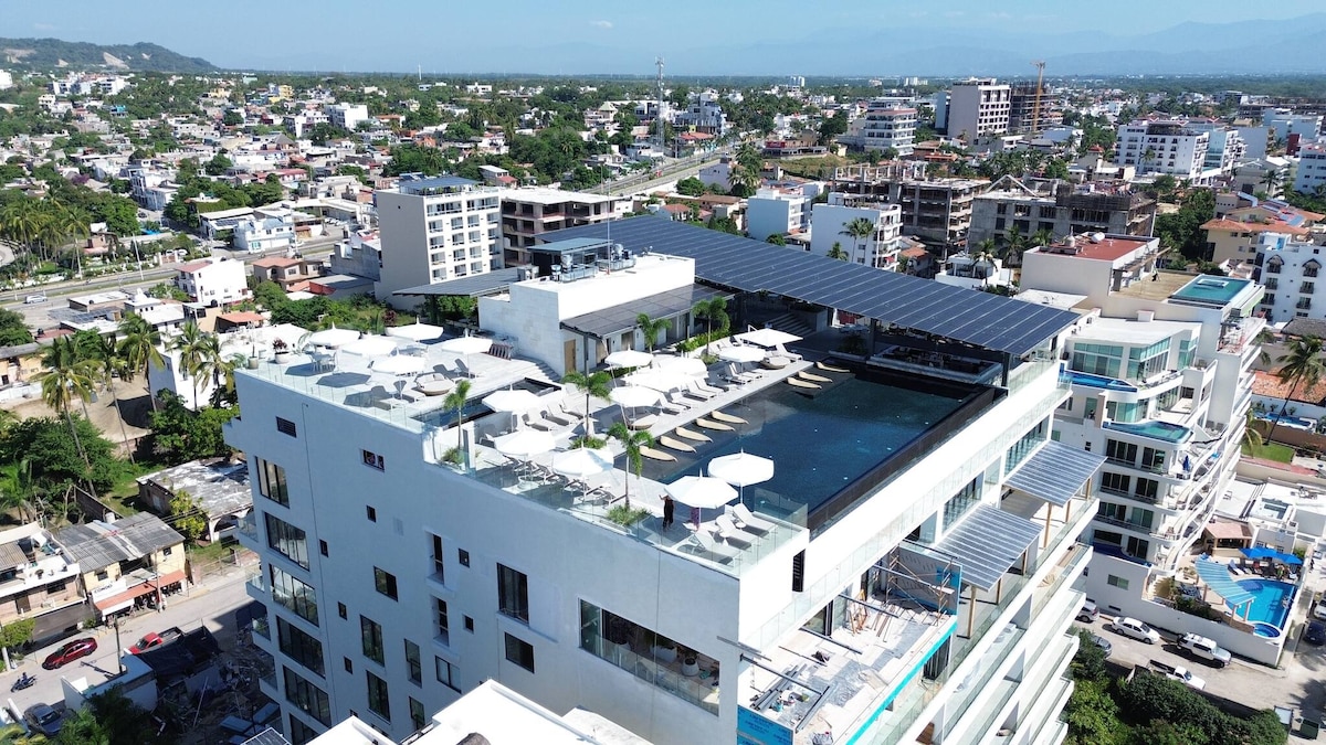 THE REEF, dans le quartier exclusif de Conchas Chinas, condo de luxe entièrement nouveau, élégant et équipé dans un environnement exceptionnel avec vue panoramique de toutes les chambres sur la baie. Il dispose d'espaces communs de luxe : piscine à débordement spectaculaire au niveau de la mer, salle de sport, centre d'affaires, salon avec télévision géante, salle à manger, barbecue à partager, parking pour une voiture, toit avec un autre salon, barbecue et piscine. À seulement 10 minutes de Puerto Vallarta en voiture.