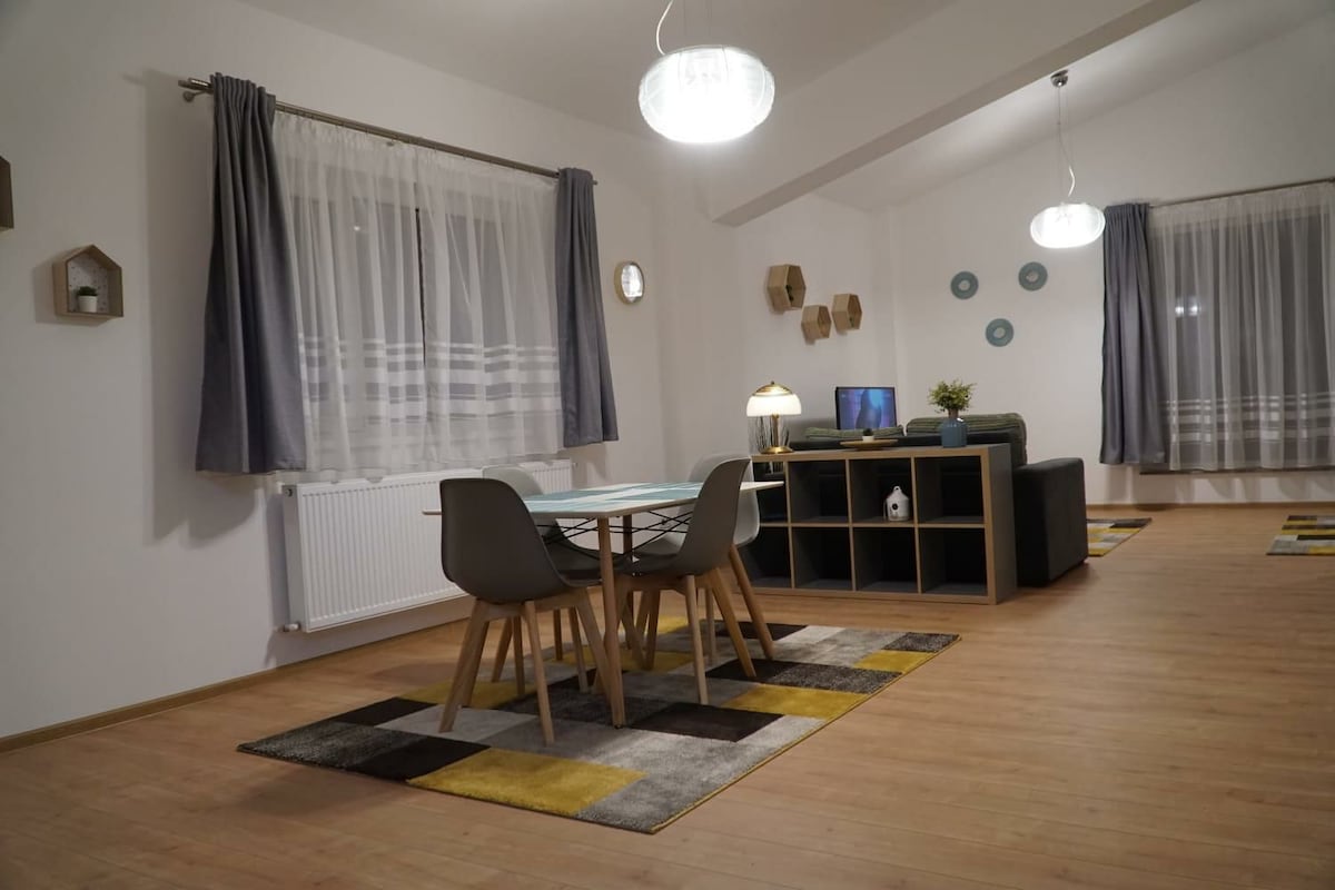 Séjournez au cœur de Bucarest ! Ce tout nouvel appartement design dispose d'une chambre privée et d'un salon confortable avec un canapé-lit confortable, parfait pour les voyageurs supplémentaires. À quelques pas du métro Piața Romană, c'est un havre de paix chic. Marchez jusqu'à la vieille ville et aux meilleurs cafés ou prenez le métro juste à l'extérieur. Comprend une connexion Wi-Fi haut débit, une cuisine élégante et des finitions modernes. Votre base urbaine parfaite pour explorer!