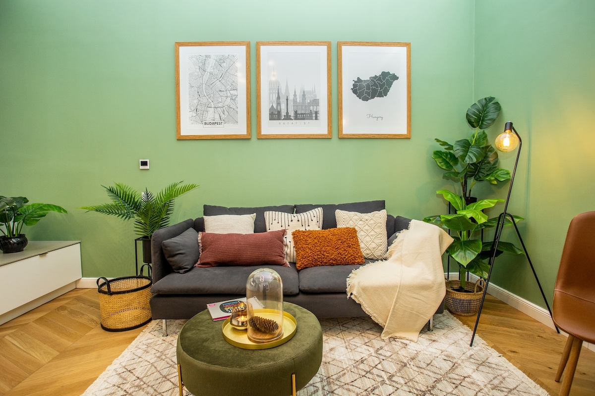 En plein centre ms tres calme, a la fois pour relaxer ou des vacances dinamiques. Situé a max.15 min. de tous les monuments, restos, cafés, bains thermaux du centre, on peut se plonger dans la culture ainsi que la ville nocturne ds ce ptit apt charmant. Puisqu’il est tres proche aux bains thermaux les plus populaires, on vous fournit des serviettes et des chaussons. Un apartement bien equipé, climatisé et construit avec bon gout, recommendé aux couples et amis!