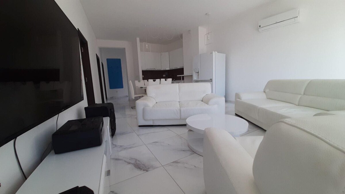 Cet appartement est de 120 mètres carrés. Il ya trois badrooms, l'une d'entre elles est avec salle de bains et deux autres chambres sont dans le hall où se trouve salle de bains avec jacuzzi. En outre, il y a un grand salon et une salle à manger avec tous les kithchen.L' appartement est sur le côté ensoleillé avec vue sur la mer, et tout l'espace est couvert de plafonds inclinés et de diverses couleurs claires.Il y a deux terrasses, une avec vue sur la mer et la ville.