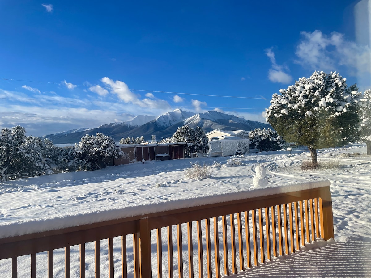 Located 5 minutes north of Buena Vista in peaceful Mount Harvard Estates. You will be surrounded on every side by 360 mountain views of Princeton, Harvard, and Yale. You can walk out the door and access miles of BLM land and the Arkansas River. Hike, Bike, Fish you name it, you can do all of it from our backdoor. Inside, you can cozy up to the fireplace, take a soak in the hot tub, or enjoy games in the sunroom while still taking in the views. Starlink, and Fire TV included. License #005736