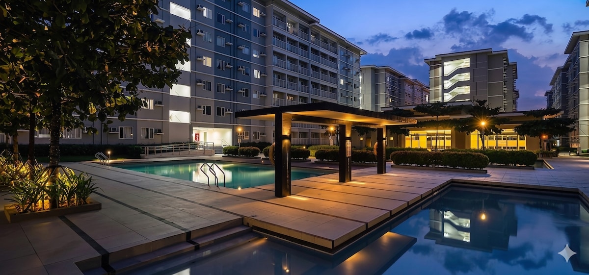 KoZy Staycation at Azure North Pampanga, Bali Tower 24th floor. Enjoy city lights and a cozy balcony, perfect for slow mornings and coffee moments. The studio fits up to 4 adults and 1 kid. Includes a queen sized bed with pullout, Smart TV with Netflix, fast Wi-Fi, PS4, karaoke, full kitchen, washing machine, toiletries, towels, and smart lock access. Near NLEX, malls, Clark Airport, and tourist spots. Amenities include a man-made beach, wave pool, roof deck, free parking, and 24/7 security.