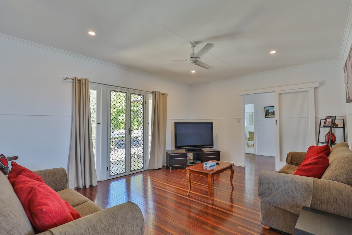 Réductions dynamiques sur les prix pour les petits groupes ! Veuillez consulter notre section « Accès des voyageurs » pour plus d'informations Idéalement situé sur la bande principale du motel dans le quartier de l'hôpital, dans l'une des rues bordées d'arbres les plus charmantes de Bundaberg. Être entièrement clôturé avec un espace d'allée pour 2 voitures et un hébergement pour les véhicules plus grands si nécessaire en dehors de la rue. La propriété dispose de chambres climatisées et permet aux voyageurs d'utiliser la piscine est autorisée au motel d'à côté, ce qui la rend idéale pour les escapades estivales.