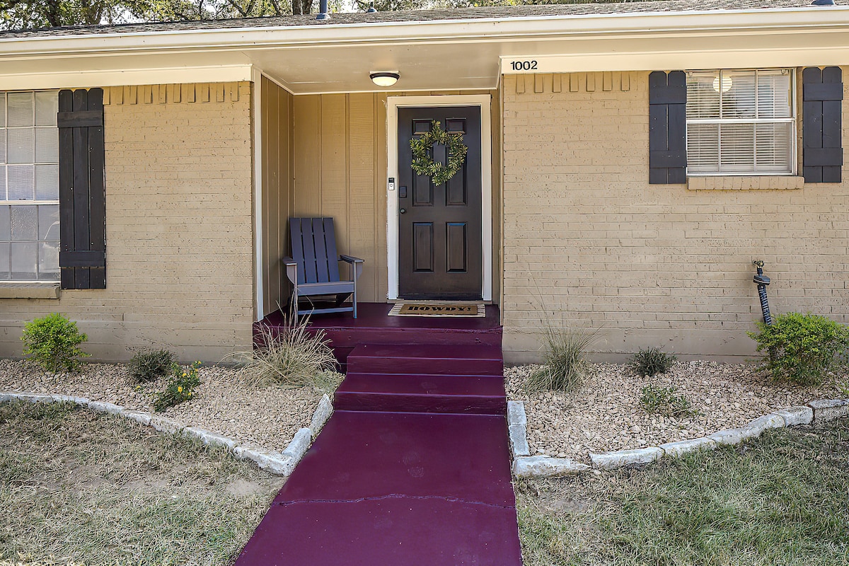✨ Parfait pour les Dunk Aggie Ring, les jours de match, les réunions de famille ou une escapade relaxante : votre escapade commence ici. Séjournez dans un charmant chalet de 1941 à quelques minutes de Texas A&M, avec une immense cour arrière adaptée aux animaux de compagnie et aux enfants, des espaces de vie confortables et le parc historique Sue Haswell juste en face. Vous vous sentirez comme chez vous dès votre arrivée.