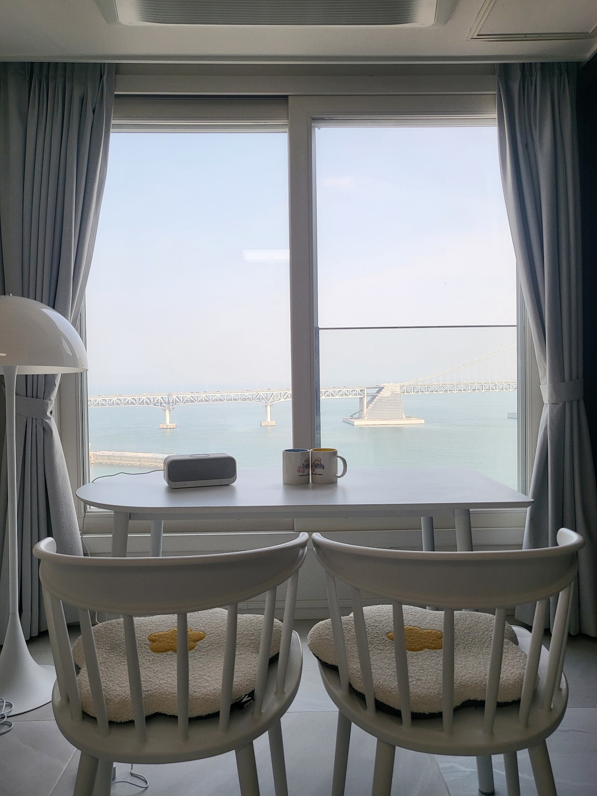You can enjoy a breathtaking and dynamic ocean view of Busan through the wide window in the living room and do a jacuzzi with a fire pit on the rooftop. The Busan Port Bridge is one of Busan's famous landmarks, which shines with colorful lights at night. In the living room and rooftop, you can enjoy the bridge with a dynamic port view.