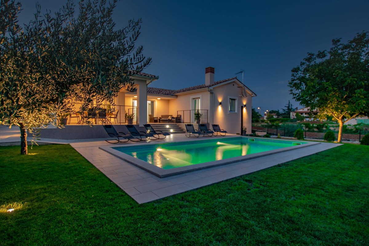 Villa Tila est située au cœur de l'Istrie, entourée de paysages verdoyants, c'est le choix idéal pour des vacances en famille. Cette villa moderne avec piscine privée présente un design unique dans chaque pièce, créant une atmosphère chaleureuse et relaxante. Avec deux chambres spacieuses, chacune avec sa propre salle de bain, une cuisine entièrement équipée et un grand salon, la villa est idéale pour une famille ou un petit groupe d'amis.