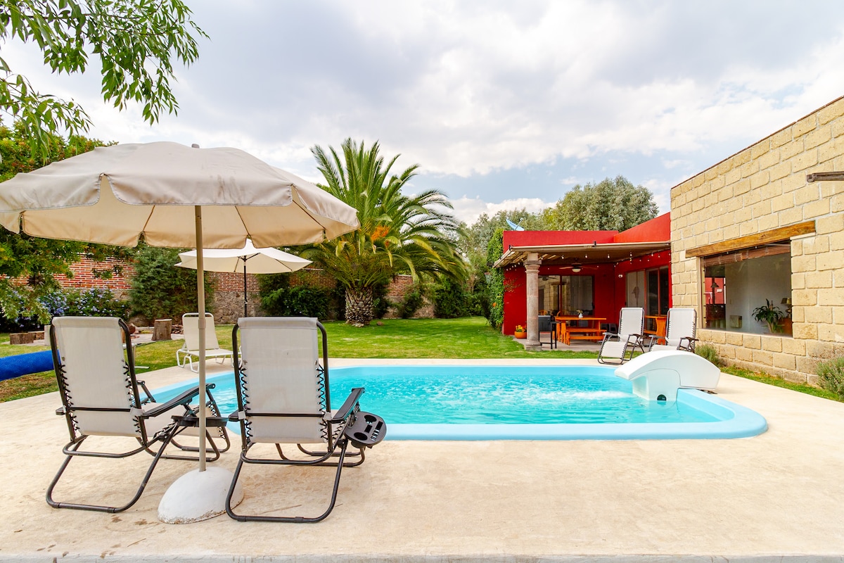 Si vous cherchez le repos et profiter en famille Nous vous attendons ! 🤗 ●Animaux de compagnie🐕🦺 ●Wi-Fi 350 Mo ●Piscine privée (6×4 m) 🏊♂️ chauffée c/cellules solaires (environ 28°C en période de chaleur) ●Option chaudière (coût supplémentaire) demande $ ●Bouteille de vin🍾à partir de 3 nuits. ● Maximum de 🔟 invités ●Proche vignobles🍇, 10 min Tequisquiapan🏘, 30 min Peña de Bernal⛰️ ●Netflix/Prime/Bien sûr ● Barbecue/Football de table/Jeux de société.