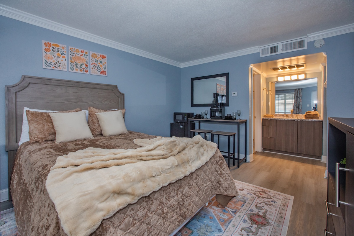 ARTICLES GRATUITS : - Bar à café gratuit - Articles de bain et de spa gratuits - Netflix gratuit - Petites gâteries de bienvenue gratuites Cet appartement est un espace confortable, moderne et chic, idéal pour les voyageurs d’affaires, les professionnels de la santé, les couples en vacances et les touristes qui explorent la ville ! Profitez des aspects *5 ÉTOILES* suivants : - Lit queen size somptueux et luxueux - Friteuse à air chaud, mini-réfrigérateur et bar à café - Téléviseur à écran plat avec Netflix - Bonbons « Merci d’avoir réservé! »