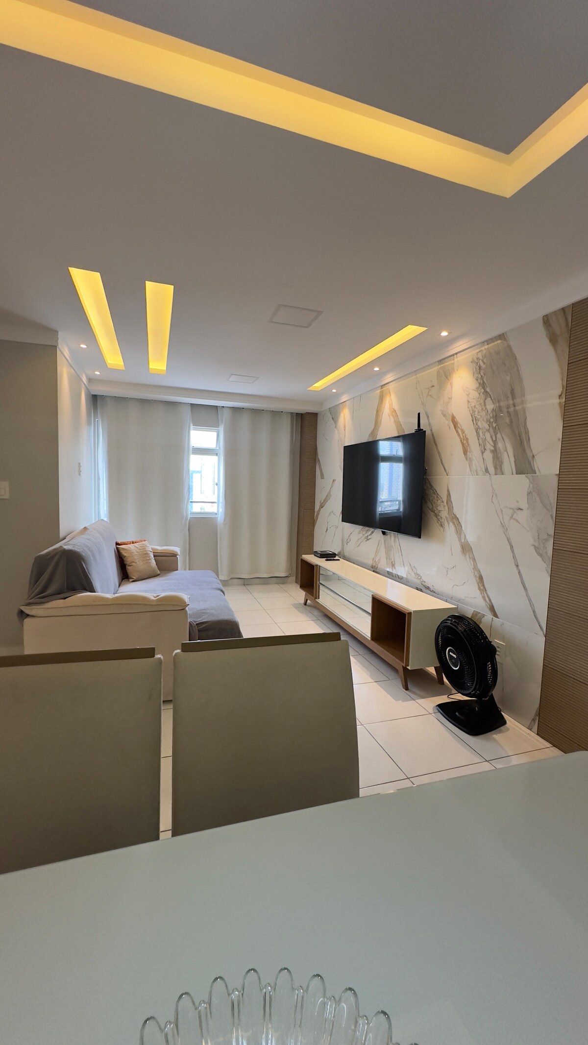 L'appartement dispose de 2 chambres, d'un salon, d'une cuisine, d'une buanderie et d'une salle de bain pour les invités. Elle est située à 3,5 km de la plage de Seixas, à 4 km de la plage de Cabo Branco. Il est proche du centre des congrès, de l'UFPB et du shopping mangabeira. Le quartier est super agréable. L'appartement est au deuxième étage. Il n'y a pas d'ascenseur dans l'immeuble