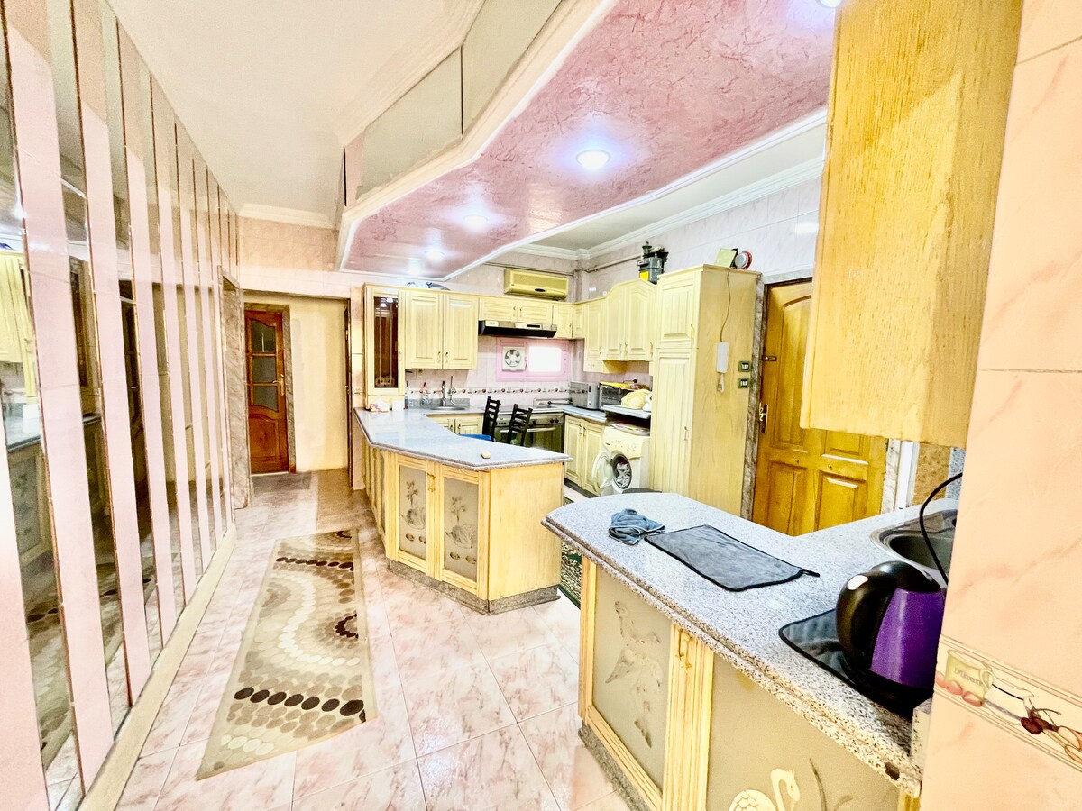 Profitez d'un appartement confortable et spacieux de 3 chambres à coucher avec 2 salles de bain au cœur de Nasr City. Idéal pour les familles, les groupes ou les visiteurs qui viennent pour des voyages médicaux ou éducatifs. La maison offre des espaces de vie confortables et une atmosphère relaxante. Situé à proximité du centre commercial City Stars, du quartier de l'éducation, des bureaux de l'OMS et de nombreuses cliniques dentaires. Entouré de cafés, de restaurants, de supermarchés et de tous les services du quotidien, c'est un endroit pratique et agréable où séjourner pour explorer Le Caire.