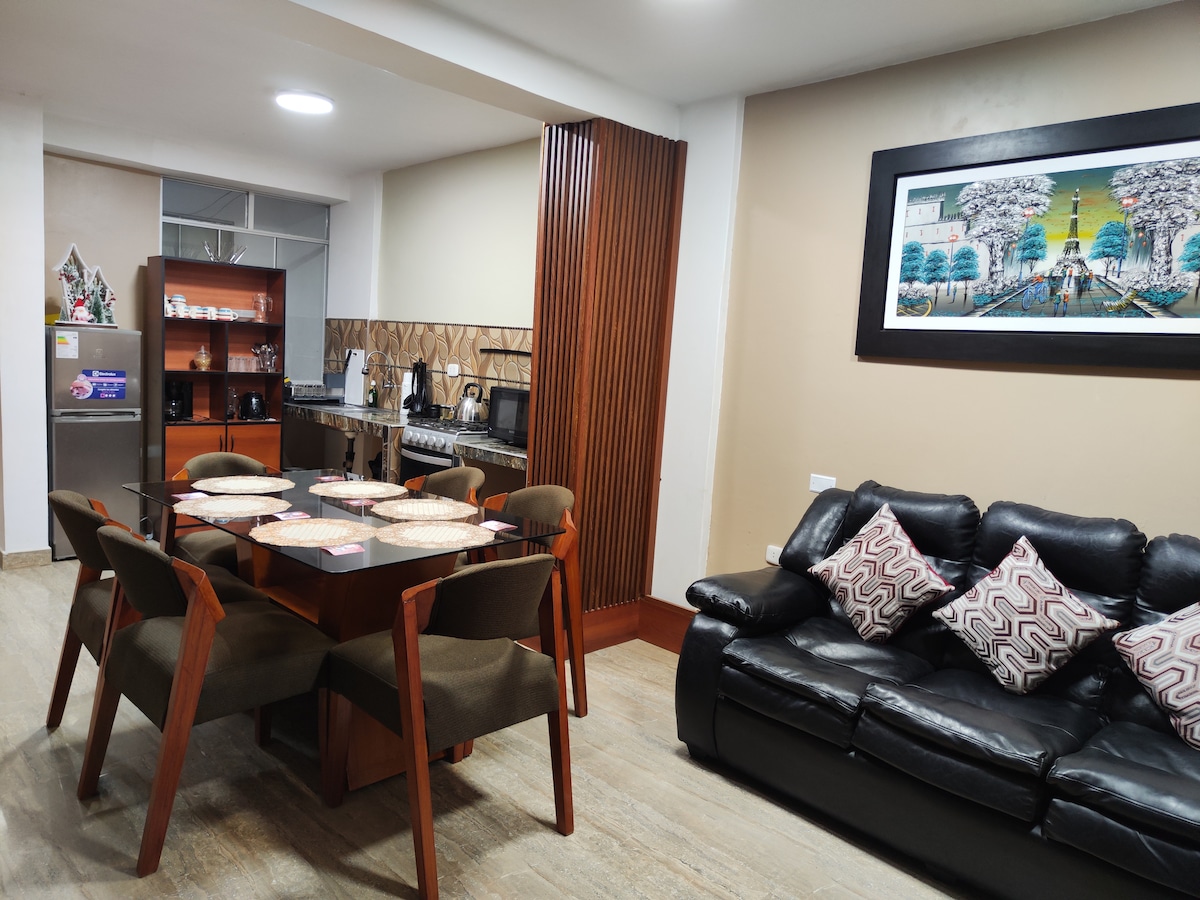 Profitez de cet appartement de première classe entouré par la nature d'un côté et la modernité de l'autre : face à la campagne toujours verte de Cajamarca et très proche des principaux centres commerciaux. Chambres confortables et propres avec un style élégant et sobre. Situé dans une copropriété avec surveillance et sécurité 24h/24.