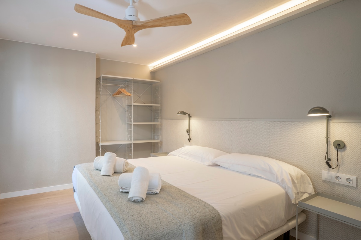 Appartement rénové pour 2 personnes avec une chambre ouverte minimaliste (lit 150x200), salle de bain complète avec douche, cuisine bien équipée ouverte sur la salle à manger et un petit balcon avec vue sur PortBo. Il dispose également d'une télévision connectée, de la climatisation en été, du chauffage en hiver, du wifi et d'un ascenseur. Le prix comprend une utilisation raisonnable mais limitée de l'eau, de l'électricité et du gaz. Situé dans une zone piétonne, entouré de boutiques et de restaurants, dont beaucoup sont fermés hors saison. Possibilité d'enregistrement avec boîte à clés. Les visites ne sont pas autorisées.