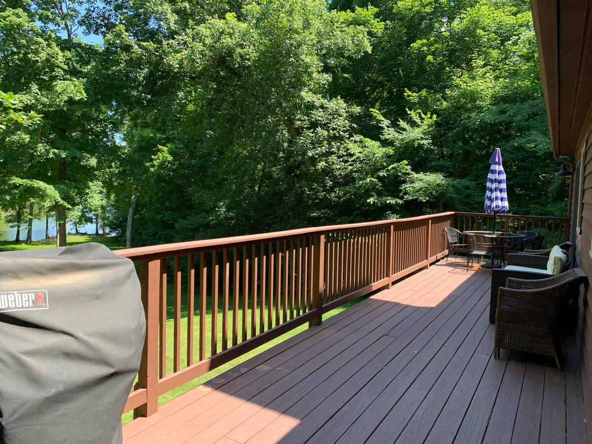 Votre toute nouvelle maison au bord du lac avec une vue imprenable sur le lac Barkley vous attend! Que vous soyez à la recherche d'un endroit pour une escapade de fin de semaine, des vacances en famille ou un voyage d'affaires, c'est l'endroit idéal. Les levers et couchers de soleil sont absolument magnifiques. Détendez-vous sur la terrasse arrière le matin ou le soir pour entendre les sons de la nature en regardant le lac. À quelques pas de la pêche, du canoë-kayak et de la baignade. Apportez votre bateau! Nous sommes à quelques minutes de la marina Eddy Creek et de l'autoroute I24.