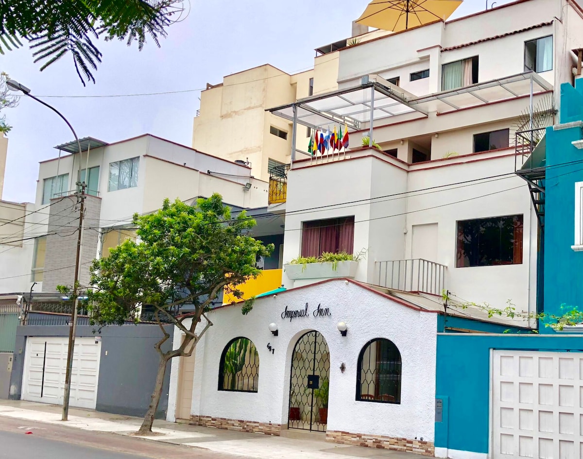 Charmant hôtel dans le quartier de Miraflores, dans un quartier résidentiel et calme, nous disposons d'un hébergement comprenant le petit déjeuner buffet et des espaces exclusifs pour le bien-être de nos clients.