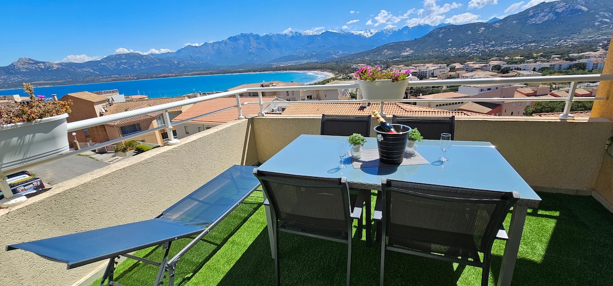 Vue sur la baie de Calvi avec Terrasse et Jardin