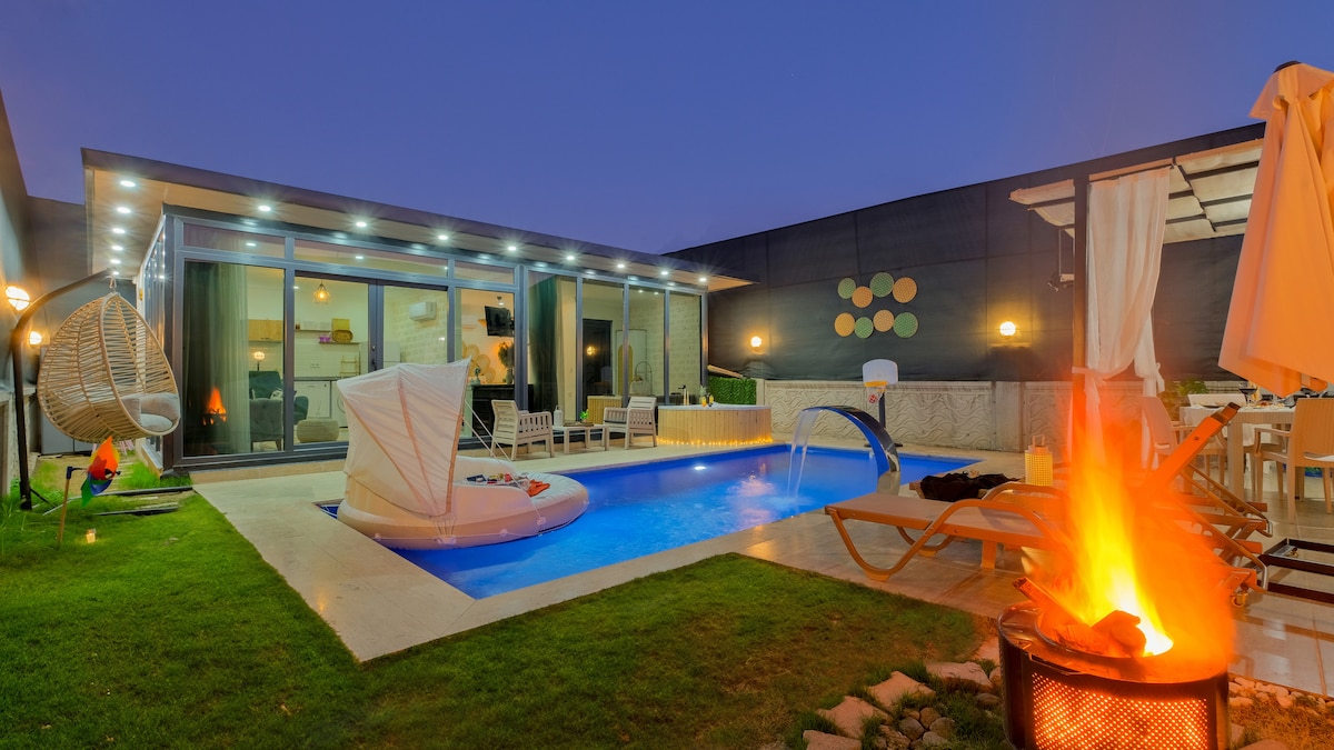 🌿 Des vacances rien que pour vous à Fethiye, en pleine nature… Villa Yaman Exclusive est une escapade moderne et romantique pour deux avec un concept de loft 1+1, situé dans l'atmosphère paisible de Fethiye. Conçu pour les jeunes mariés et ceux qui veulent rendre leurs moments spéciaux inoubliables. Notre villa, qui est loin du bruit de la ville mais proche de toutes les commodités, est prête pour que vous puissiez vous détendre et profiter de moments agréables ensemble avec son architecture intérieure moderne, son design différent, sa piscine privée et son jacuzzi dans la piscine.