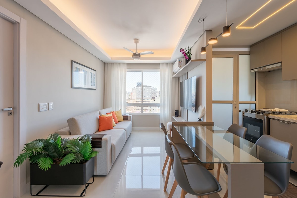 Bienvenue chez Aconchega Aqui ! Un appartement confortable au cœur de Curitiba. Vous trouverez ici un espace moderne, équipé et prêt à vous accueillir au quotidien. Dans la copropriété, certains environnements faciliteront votre visite : parking (jusqu'à une grande voiture), espace bureau, salon sur le toit, salle de sport et marché. Nous sommes situés à l'Av. Iguaçu, entre les centres commerciaux Curitiba (700m) et Estação (900m), en face de la Praça Ouvidor Pardinho. Retrouvez-nous sur Instagram : @aconchega.aqui