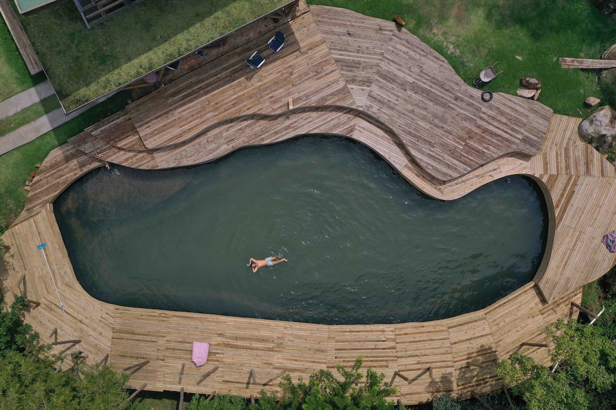 PARFAIT POUR SE CONNECTER À MÈRE NATURE Nous avons un espace ouvert pour l'hébergement, des essais photo ou des rencontres (jusqu'à 100 personnes). Une maison pas très grande mais incroyable à côté d'un lac de baignade entouré d'une terrasse en bois. La ferme est entourée d'une belle forêt, d'oiseaux et de singes capucins occasionnels. Situé à 2 km du Macacú Lagoon Bridge Bar. Dans un condominium de Chácaras, Morada dos Tucanos. Nous sommes à 7 km du centre-ville de Garopaba. La plage la plus proche est à 3 km.