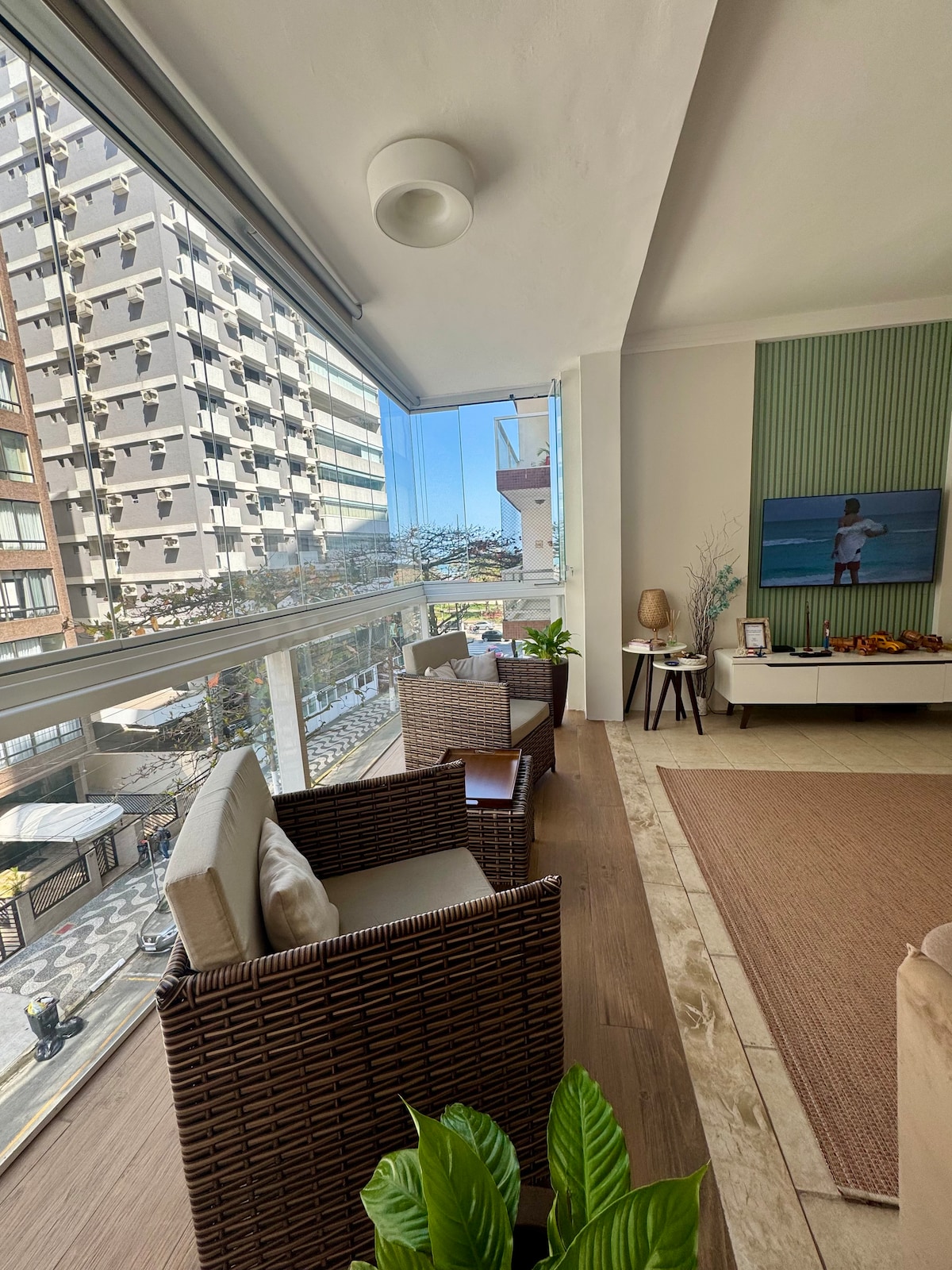 Bel appartement avec 2 chambres (1 suite), climatisation dans chaque chambre, TV dans le salon et la suite ; Wi-fi, cuisine complète ; machine à laver et à sécher. Toutes les pièces de l'appartement ont une large vue sur la mer (salle de séjour, buanderie, cuisine et les deux chambres). Énergie 110 et 220 ; L'immeuble dispose de piscines, saunas (sec et humide), jacuzzi, salle de jeux, salle de jeux, aire de jeux, salle de sport, service de plage (chaises et parasol), et nettoyage quotidien simple de l'appartement, déjà inclus. 1 place de parking.