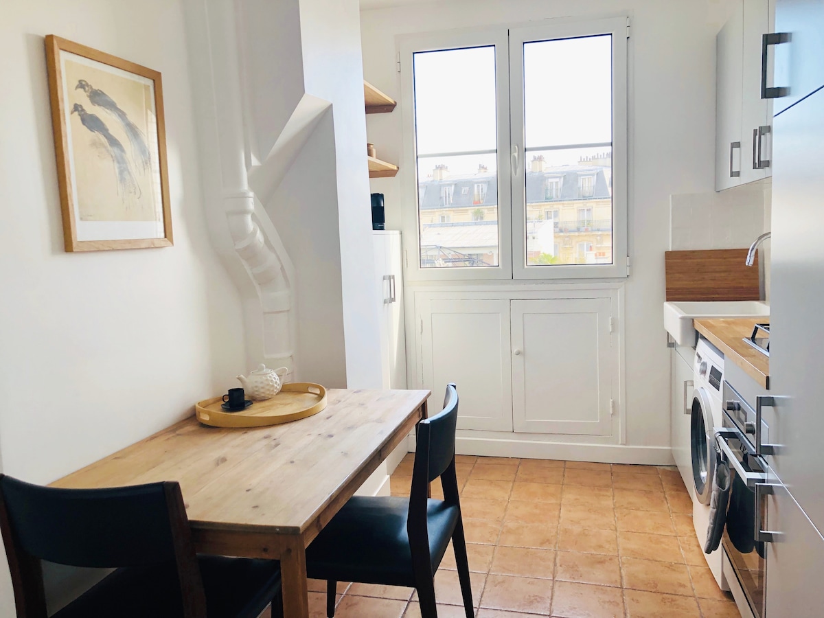 As a food lover, I have created a very personal and unique space for fellow foodies. Located in one of the hippest parts of Paris, my well-equipped kitchen includes a 3m long dining table that seats up to 12 people. The apartment has many original features with a private terrace, bedroom with a double sofa bed, and an original small retro bathroom. While the kitchen is very well equipped all mother comforts are kept to a minimum.