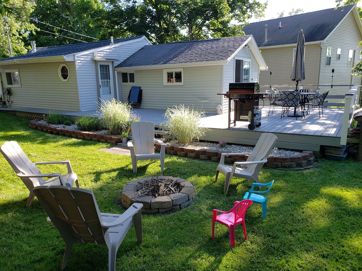 Juste en haut du chemin des plages de baignade privées, notre chalet récemment rénové (après la destruction dévastatrice d'un arbre l'année dernière) a été soigneusement décoré pour assurer le confort pour que vous vous sentiez comme chez vous. Ce chalet de 2 chambres et 1,5 salle de bain a de nombreux espaces à apprécier, y compris le porche fermé et la terrasse arrière. Nous vous invitons à rester jusqu'à 14 jours entre juin et août, ou plus longtemps en dehors de notre saison estivale. Veuillez vous renseigner sur la disponibilité et les prix en dehors des dates ci-dessus.