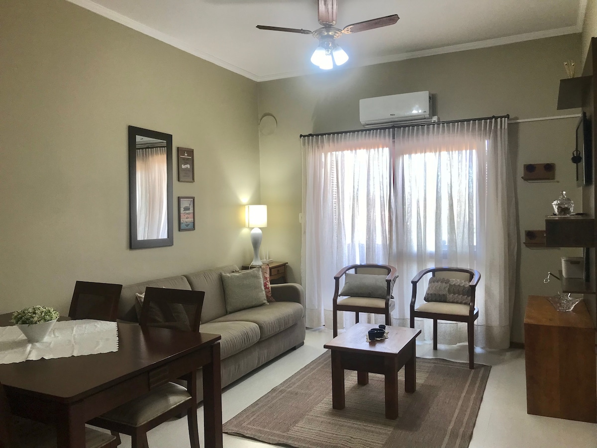Vous serez proche de tout lorsque vous séjournerez dans ce logement bien situé. Nous avons organisé cet appartement pour accueillir confortablement et efficacement les voyageurs avec leur famille et leurs amis. Nous avons une cuisine bien équipée. Climatisation chaude et froide dans la chambre. Salle de bain complète avec espace pour vos ustensiles et une douche avec de l'eau abondante. Parking privé couvert et ascenseur. À seulement quelques mètres du centre de Gramado, à seulement 3 pâtés de maisons de Borges ! J'ai le plaisir de vous accueillir !