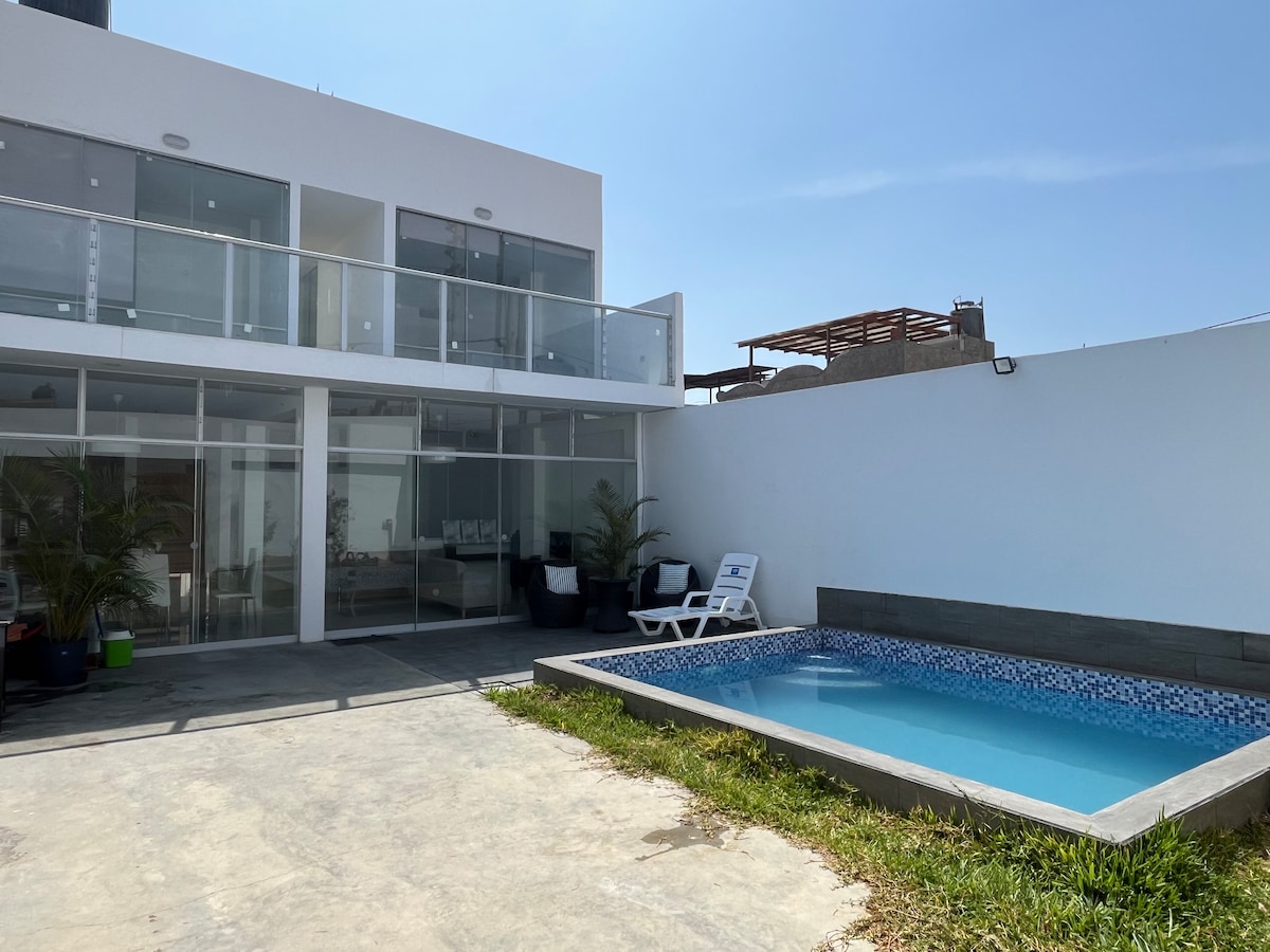 Maison de plage en face du parc en copropriété privée Playa Azul, à 15 mètres du quai, grande terrasse avec grand barbecue, piscine pour enfants avec vue sur la mer. Il y a des espaces communs pour les sports, piscine et jeux pour enfants, piscine et jeux pour adultes, restaurant et marché.(saison estivale) Situé à 5 min. de Cerro Azul, à 15 min de Tottus et à 20 min de Wong Asia. Idéal pour passer la pandémie en famille, il dispose d'une télévision et d'un direct avec forfait HBO Premium, d'UNE CONNEXION WI-FI en option Sécurité 24 h/24