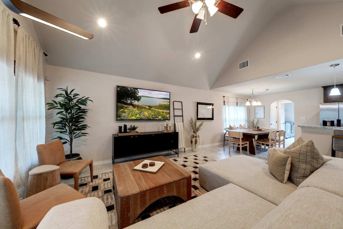 Bienvenue à The Overlook Tower ! Cette maison de 2 chambres et 1 salle de bain est parfaite pour les couples, les petites familles et les amoureux du lac à la recherche d'une escapade tranquille. Les équipements comprennent un jacuzzi pour 5 personnes, un grand patio avec chaises longues, une vue panoramique sur le Texas Hill Country, un raccordement pour VR/chargeur Tesla, 2 téléviseurs intelligents, 2 canapés, une table à manger et une cuisine entièrement équipée. Chaque chambre est équipée pour profiter de votre voyage avec confort ! Nous vous souhaitons un agréable séjour !