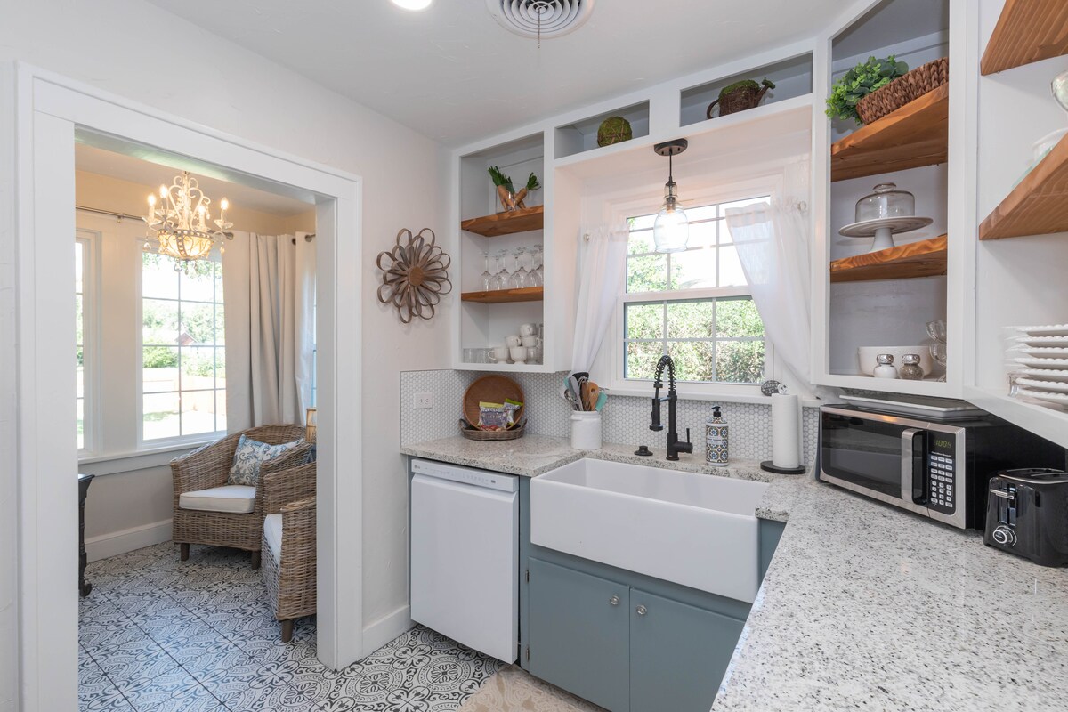 Notre chalet offre tout ce dont vous avez besoin pour passer un séjour agréable, que ce soit pour une courte escale ou pour passer un moment à découvrir tout ce qu'Amarillo a à offrir. Nous avons entièrement rénové ce joyau des années 1920 et lui avons redonné son charme d'origine. Promenez-vous ou promenez le chien dans notre quartier historique avec deux parcs à quelques pas. Nous sommes situés au centre et à quelques minutes de I 40. Également à proximité du centre-ville et de nombreux restaurants. Nous pensons que vous vous sentirez comme chez vous dans notre confortable chalet.